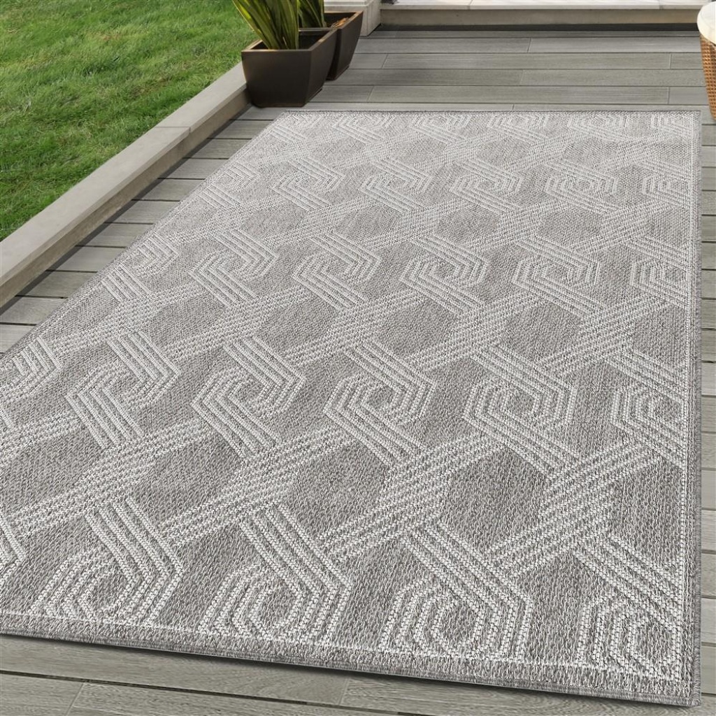 Bahçe Balkon Dış Mekan Teras Halısı İskandinav Örgü desenli Gri Renkli Halı
