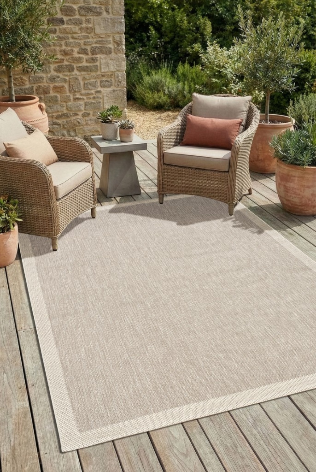 Çerçeveli Bohem Dokunuşlu Doğal Tonlarda Modern Sisal Bej - Krem Renk Halı