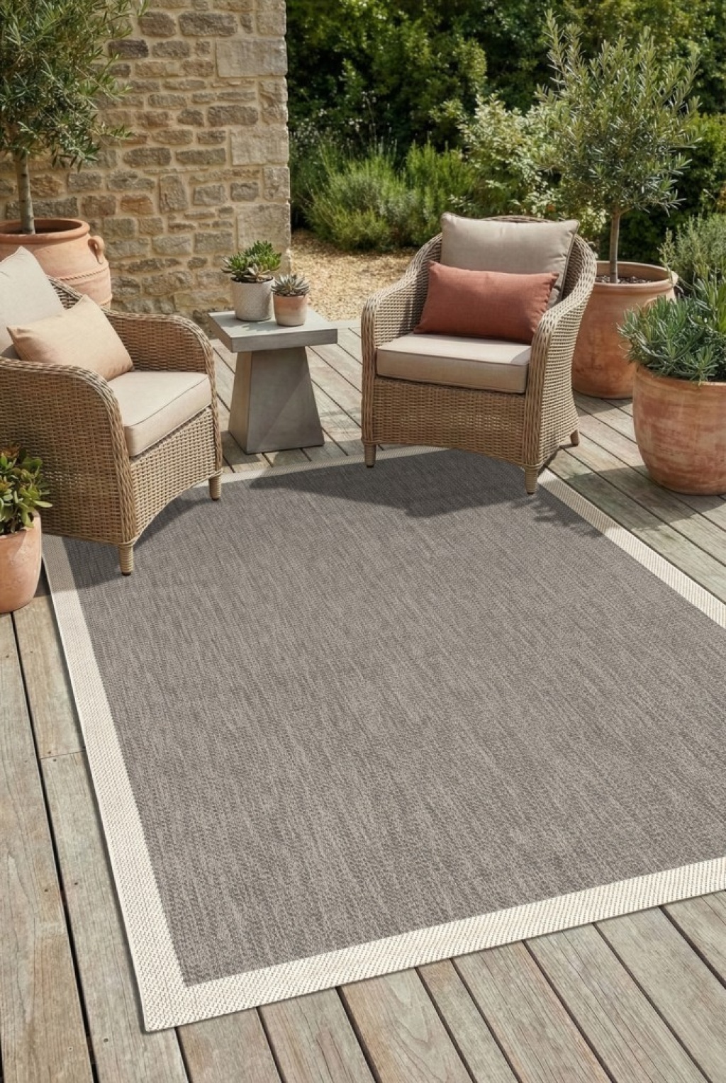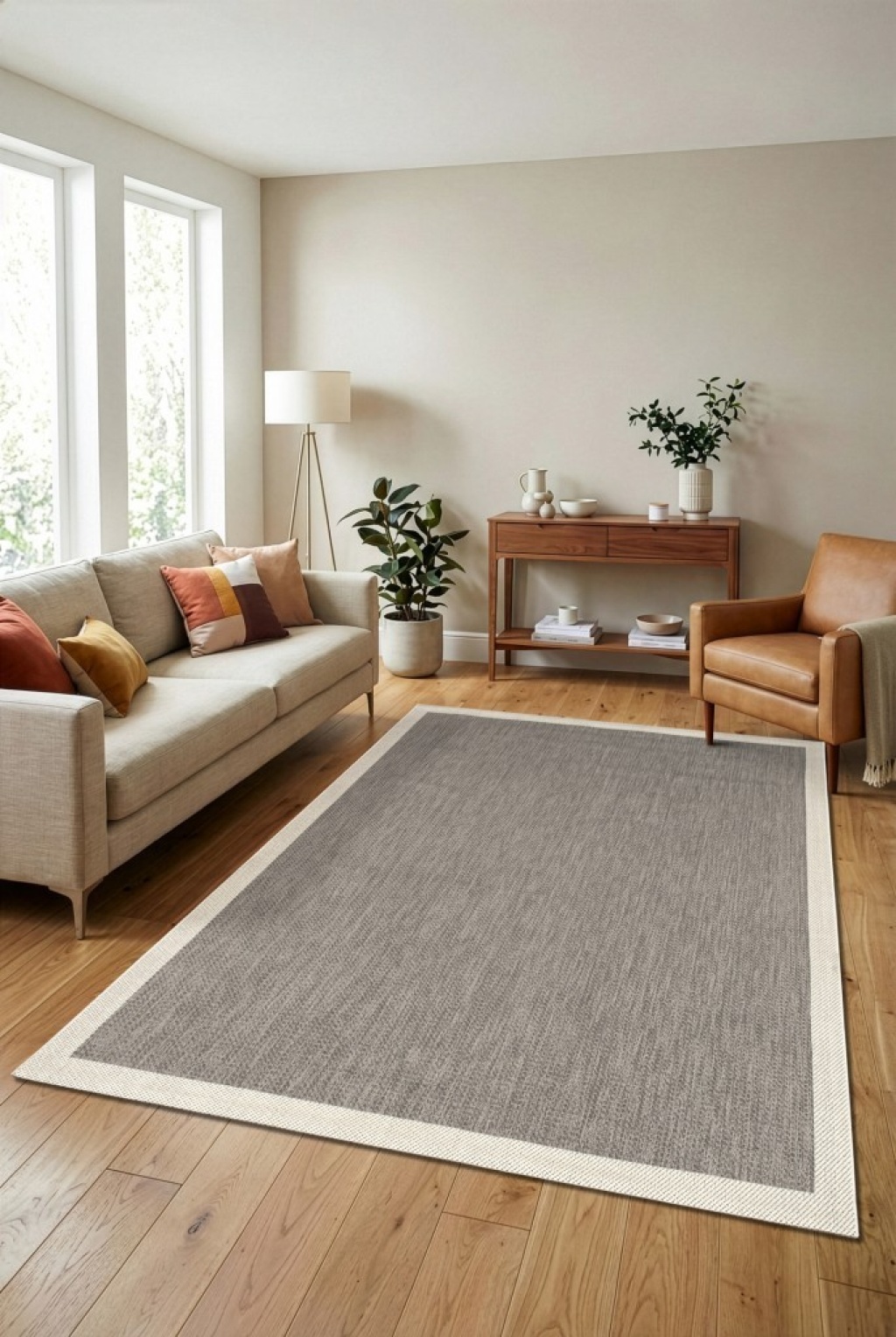 Çerçeveli Bohem Dokunuşlu Doğal Tonlarda Modern Sisal Krem Gri Renk Halı