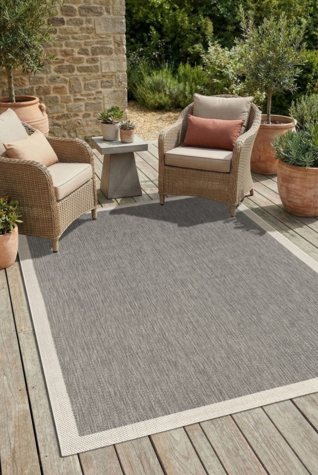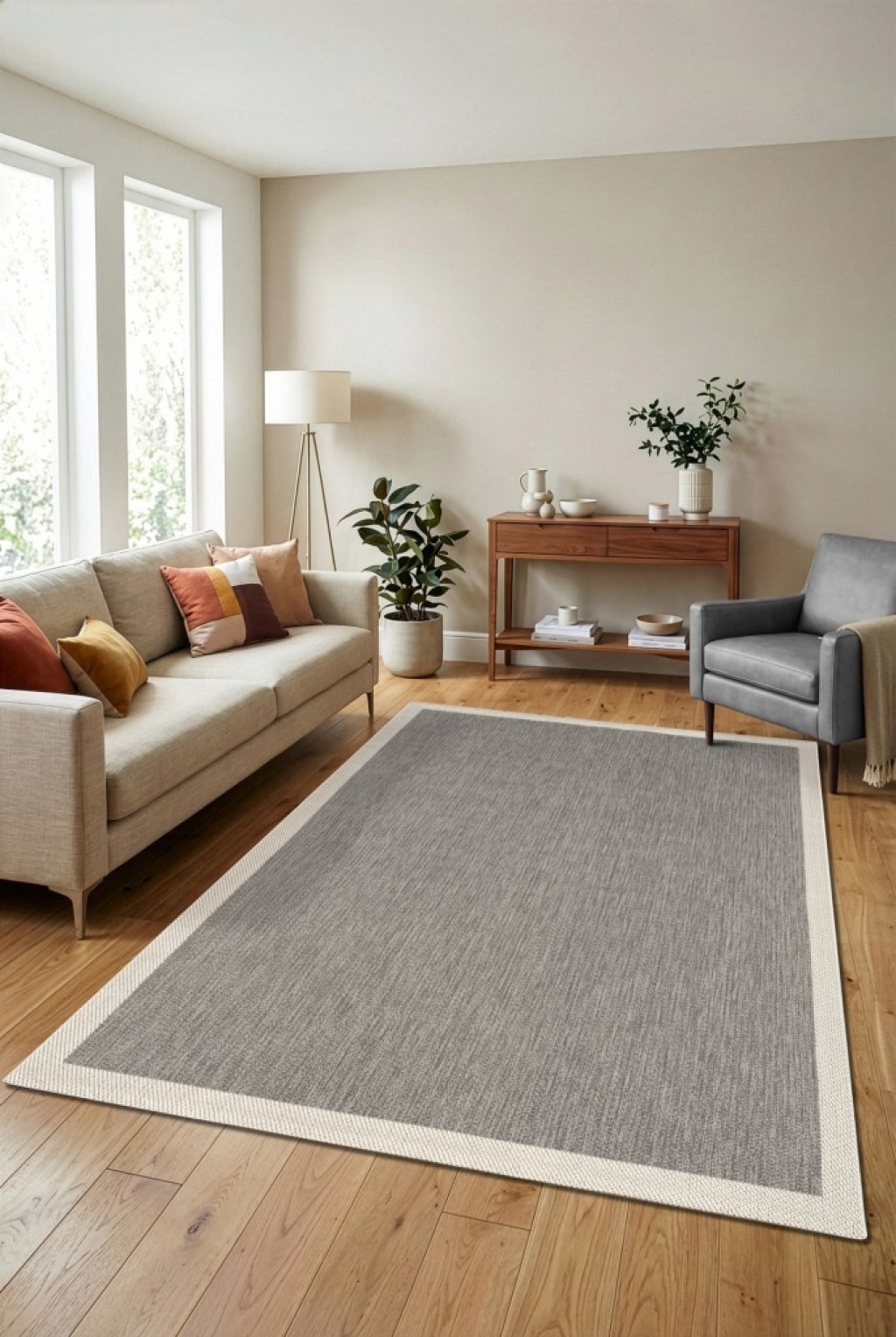 Çerçeveli Bohem Dokunuşlu Doğal Tonlarda Modern Sisal Krem Gri Renk Halı