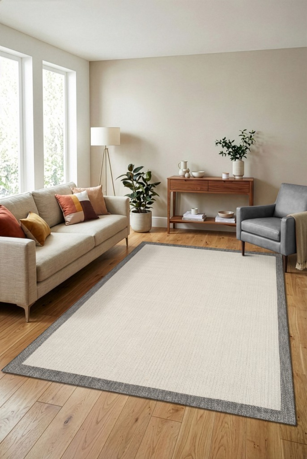Çerçeveli Bohem Dokunuşlu Doğal Tonlarda Modern Sisal Krem Gri Renk Halı