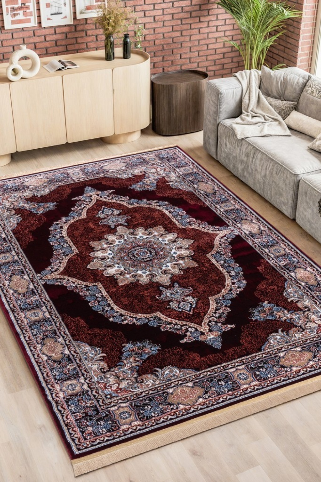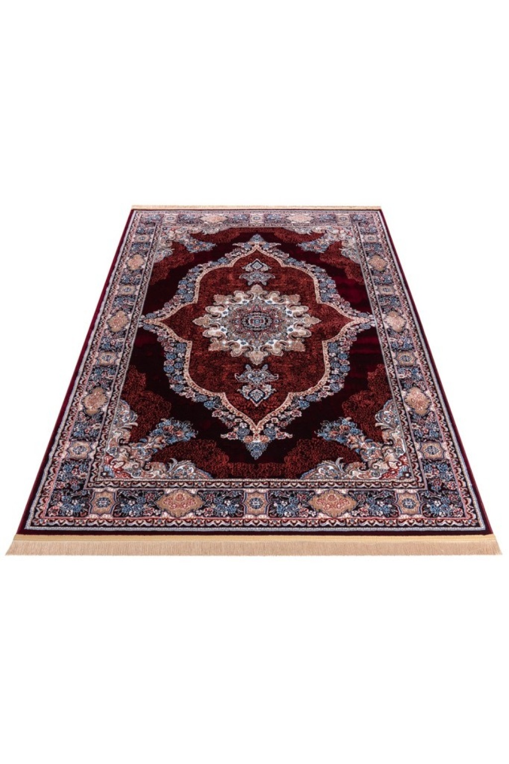 Geleneksel İran Desenli Burgonya Zeminli Kırmızı Tonlarda Halı