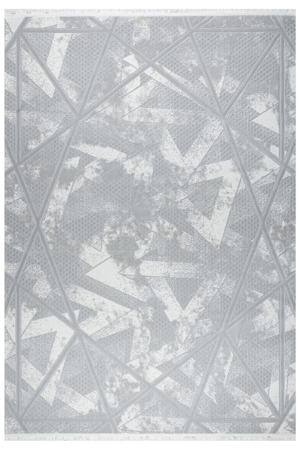 Geometrik Tasarımlı Pamuk Tabanlı Salon - Oturma Odası Gri Renk Halı