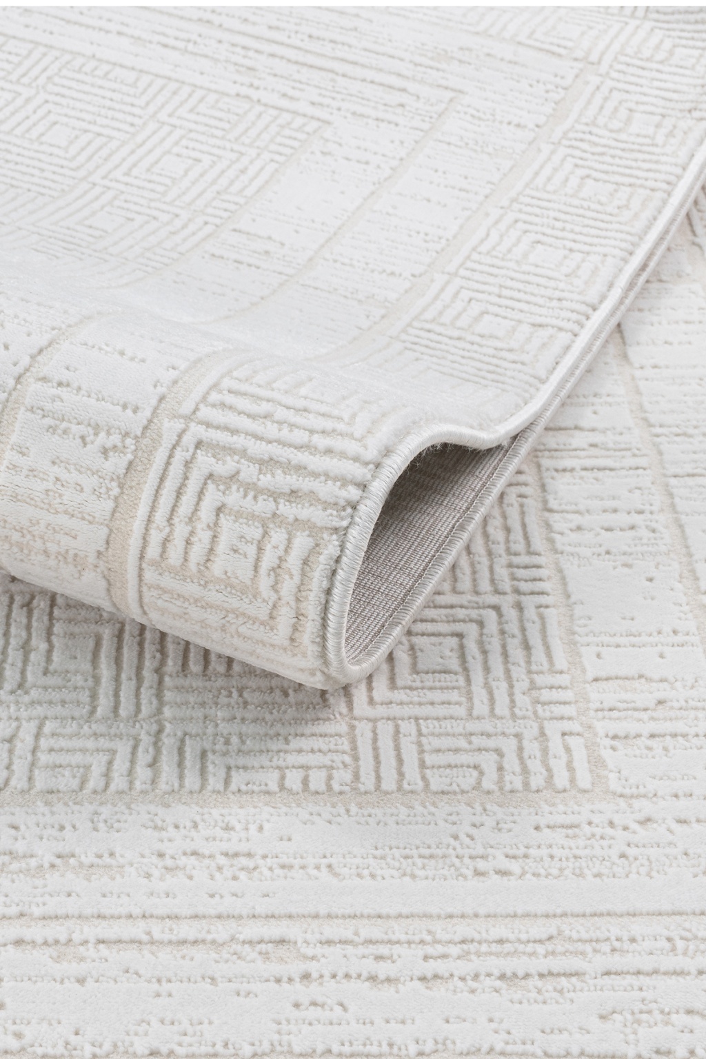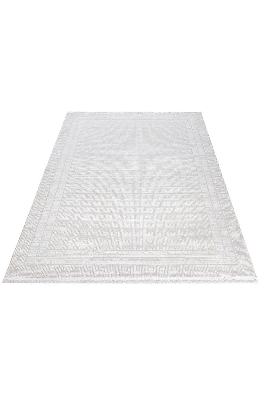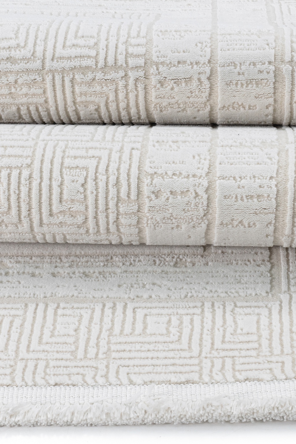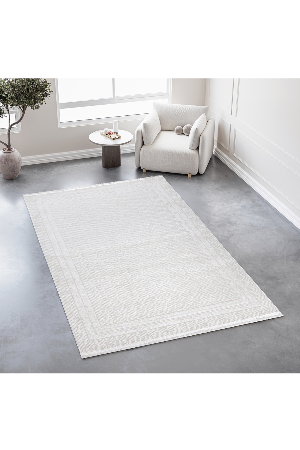Grid Motifli Geometri Modern Tasarımlı Pamuk Tabanlı Salon - Oturma Odası Krem Renk Halı