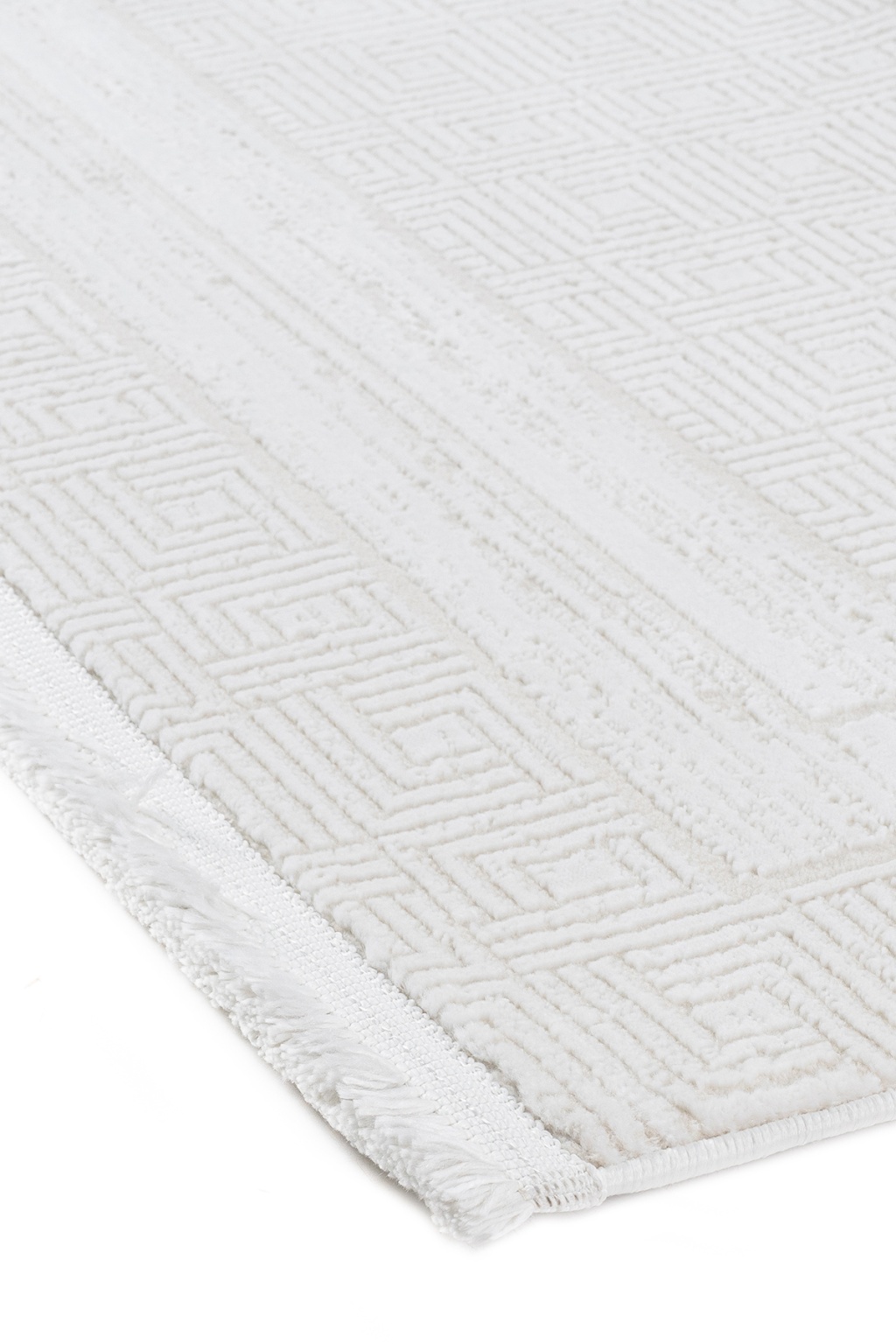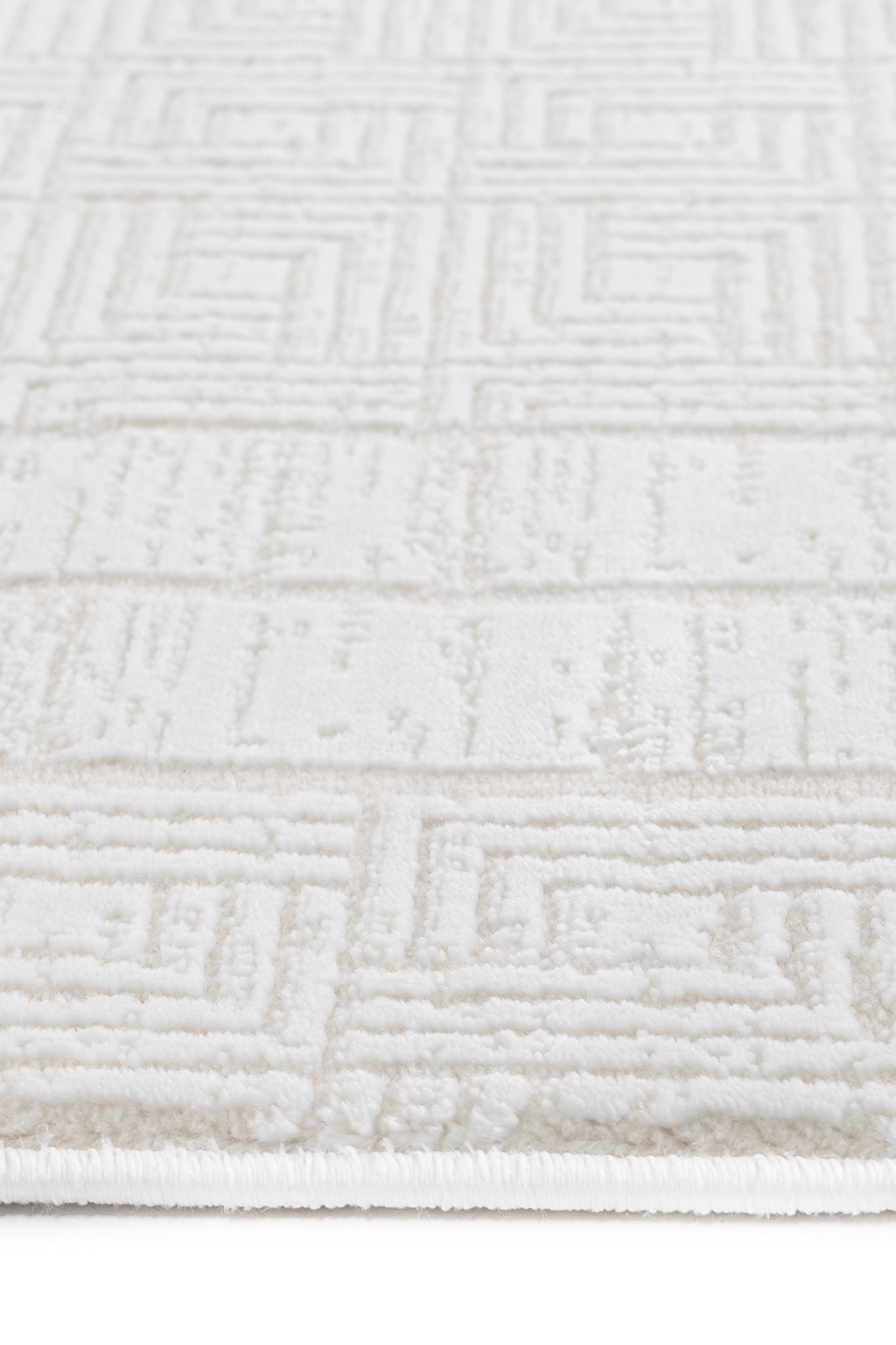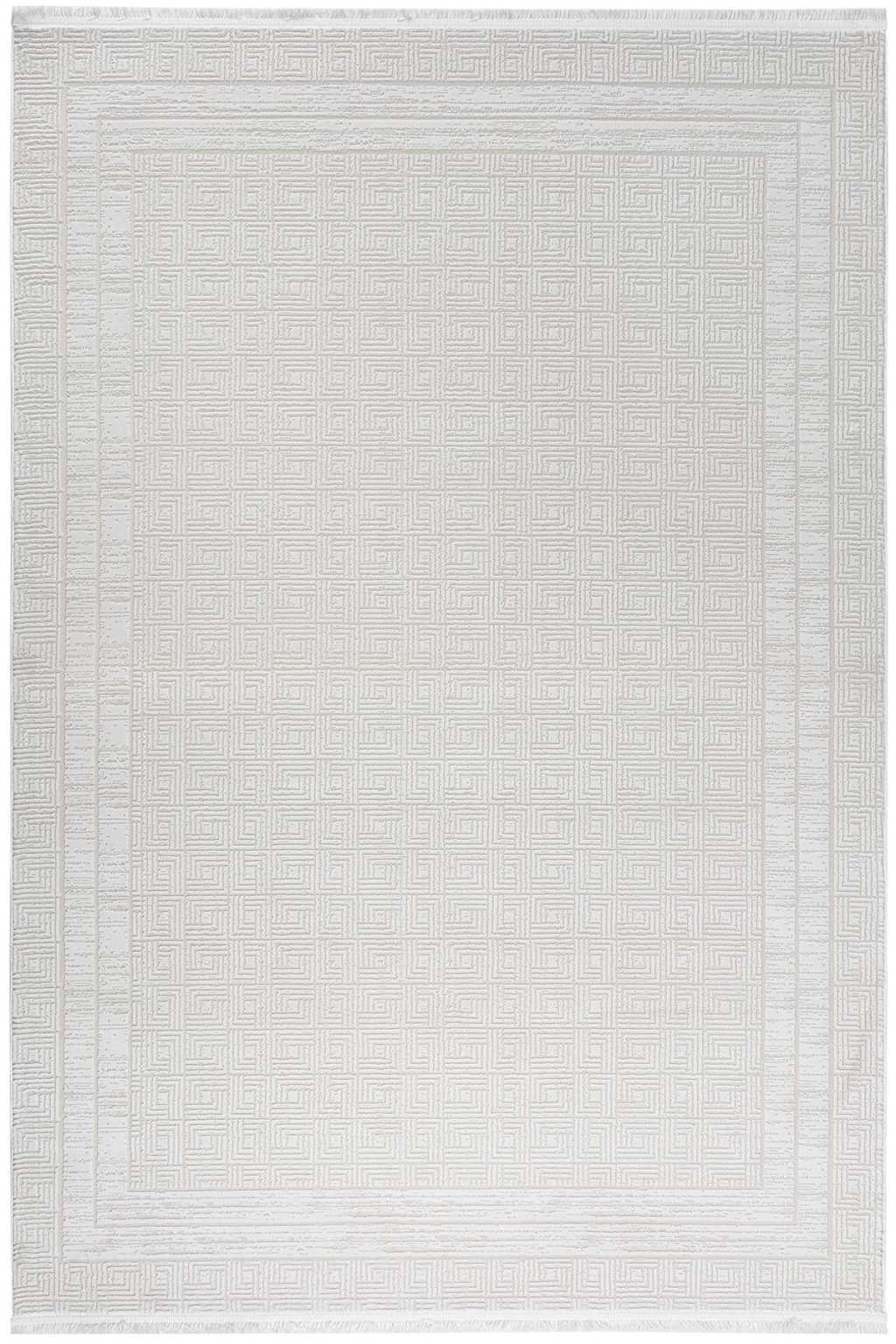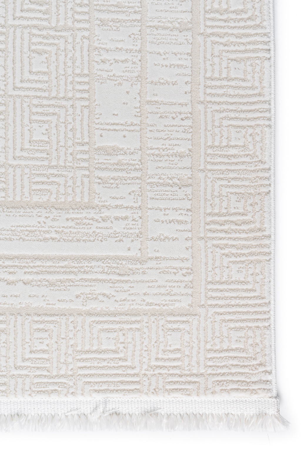 Grid Motifli Geometri Modern Tasarımlı Pamuk Tabanlı Salon - Oturma Odası Krem Renk Halı
