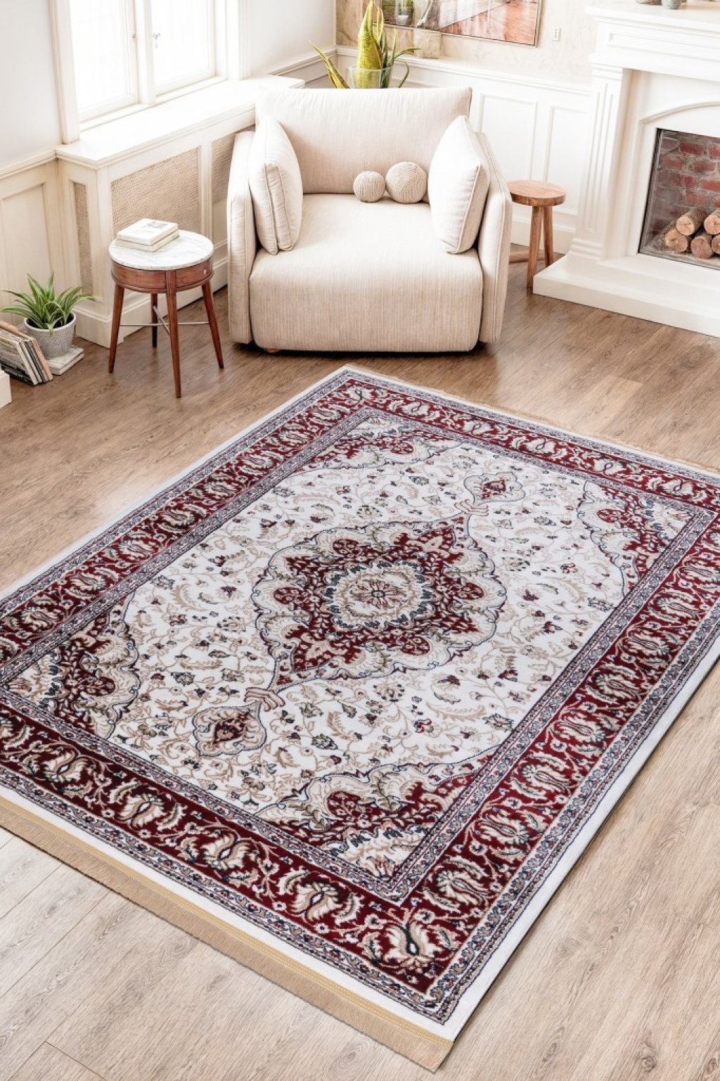 İncelikle Dokunmuş: Geleneksel İran Motifli El Dokuma Halı Krem Tonlarında Halı