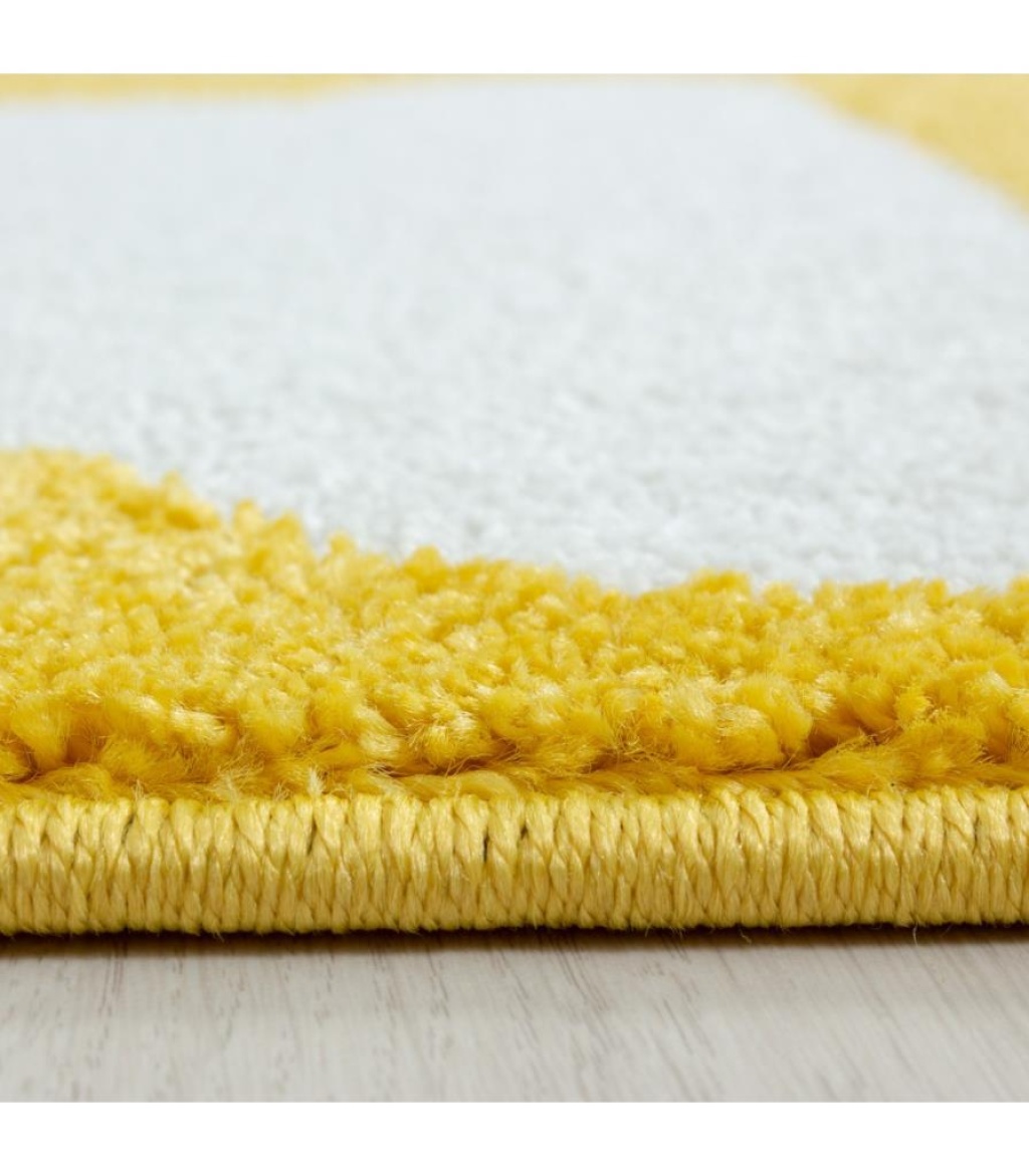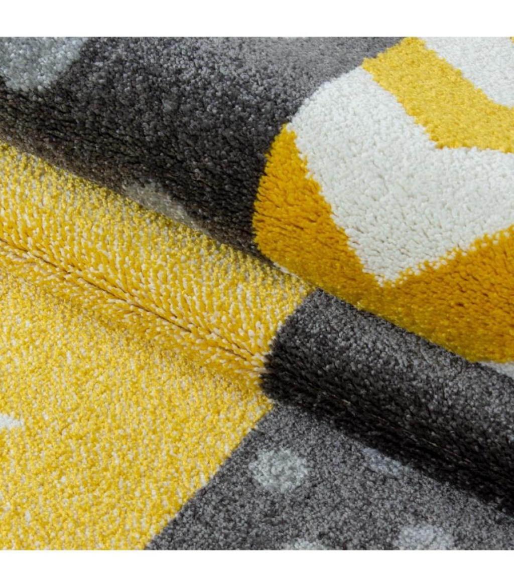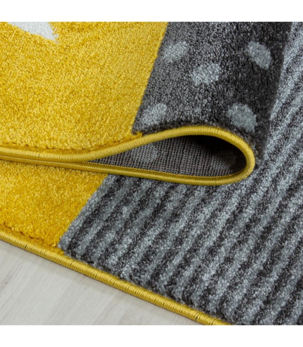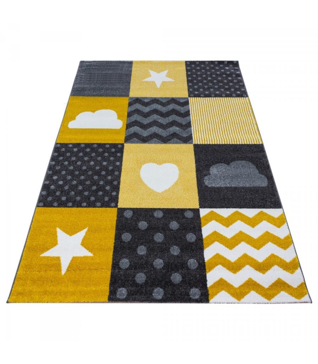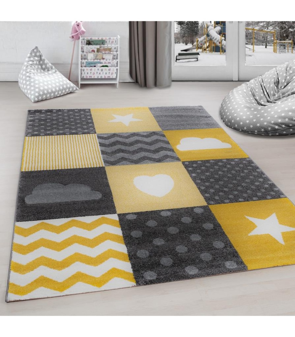 Kareli Yıldız Kalp Bulut Desenli Soft Çocuk odası halısı Gri Sarı Beyaz