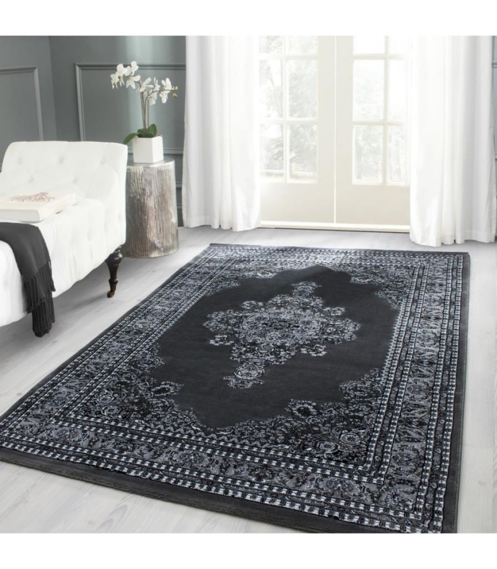 Klasik desenli Halı Iran tarzı Madalyon süsleme Siyah Gri Beyaz Renkler