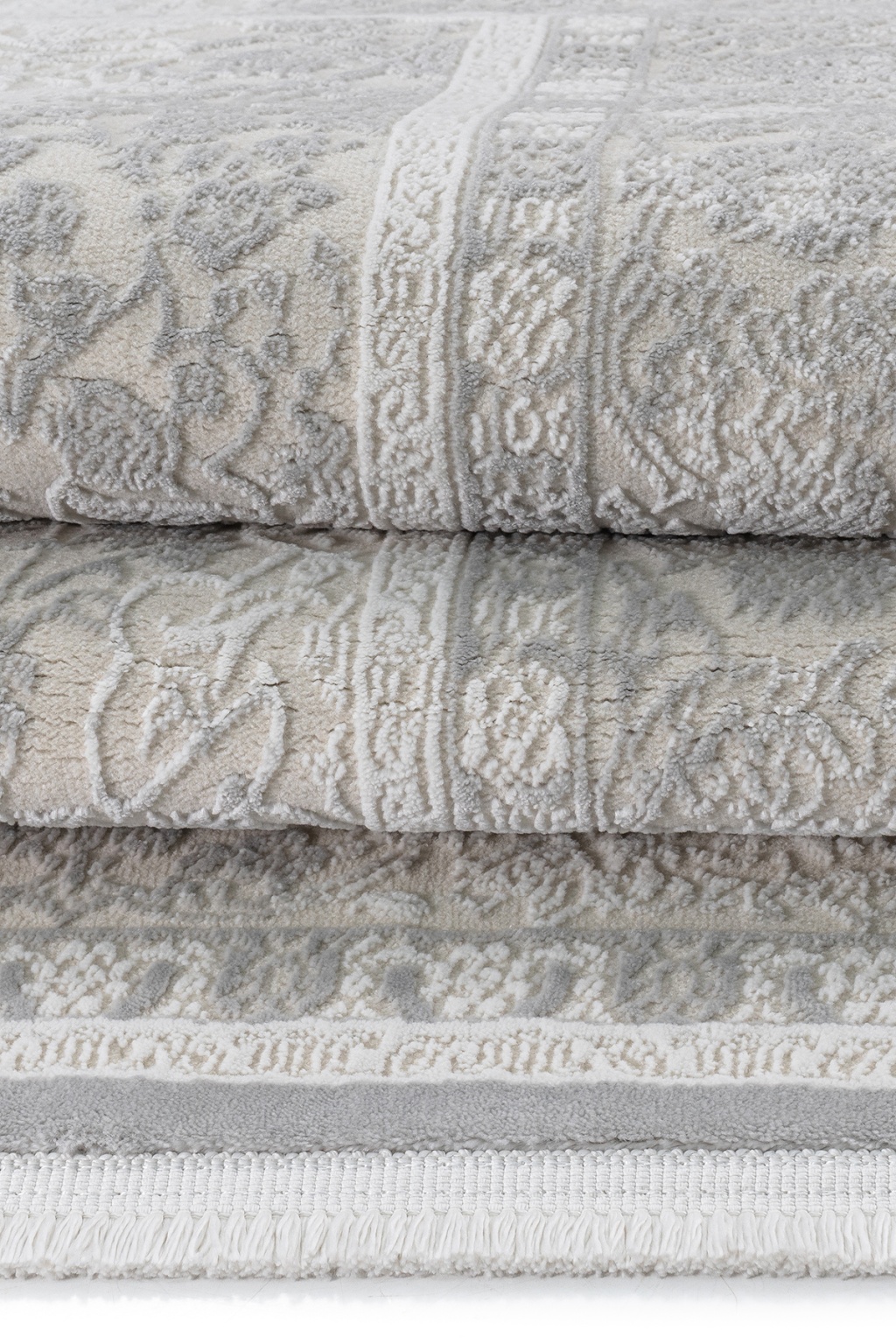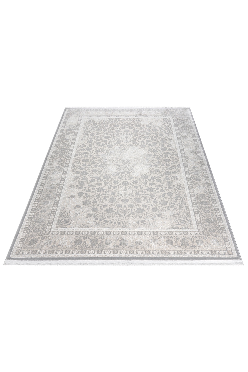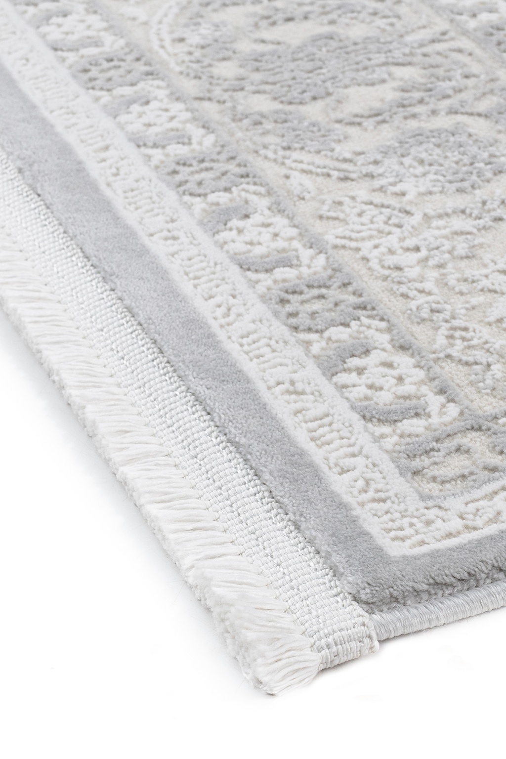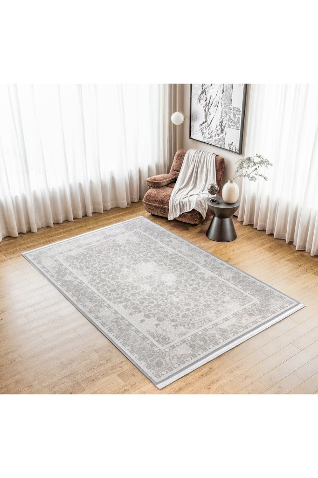 Klasik Medalyon Tasarımlı Pamuk Tabanlı Salon - Oturma Odası Gri Renk Halı