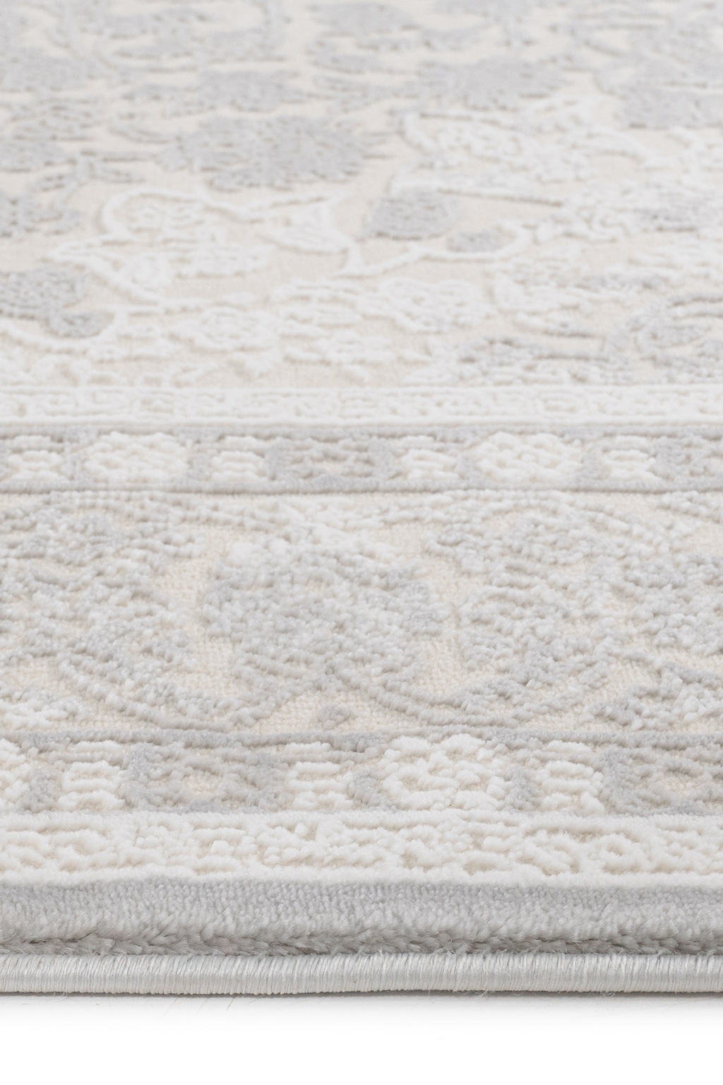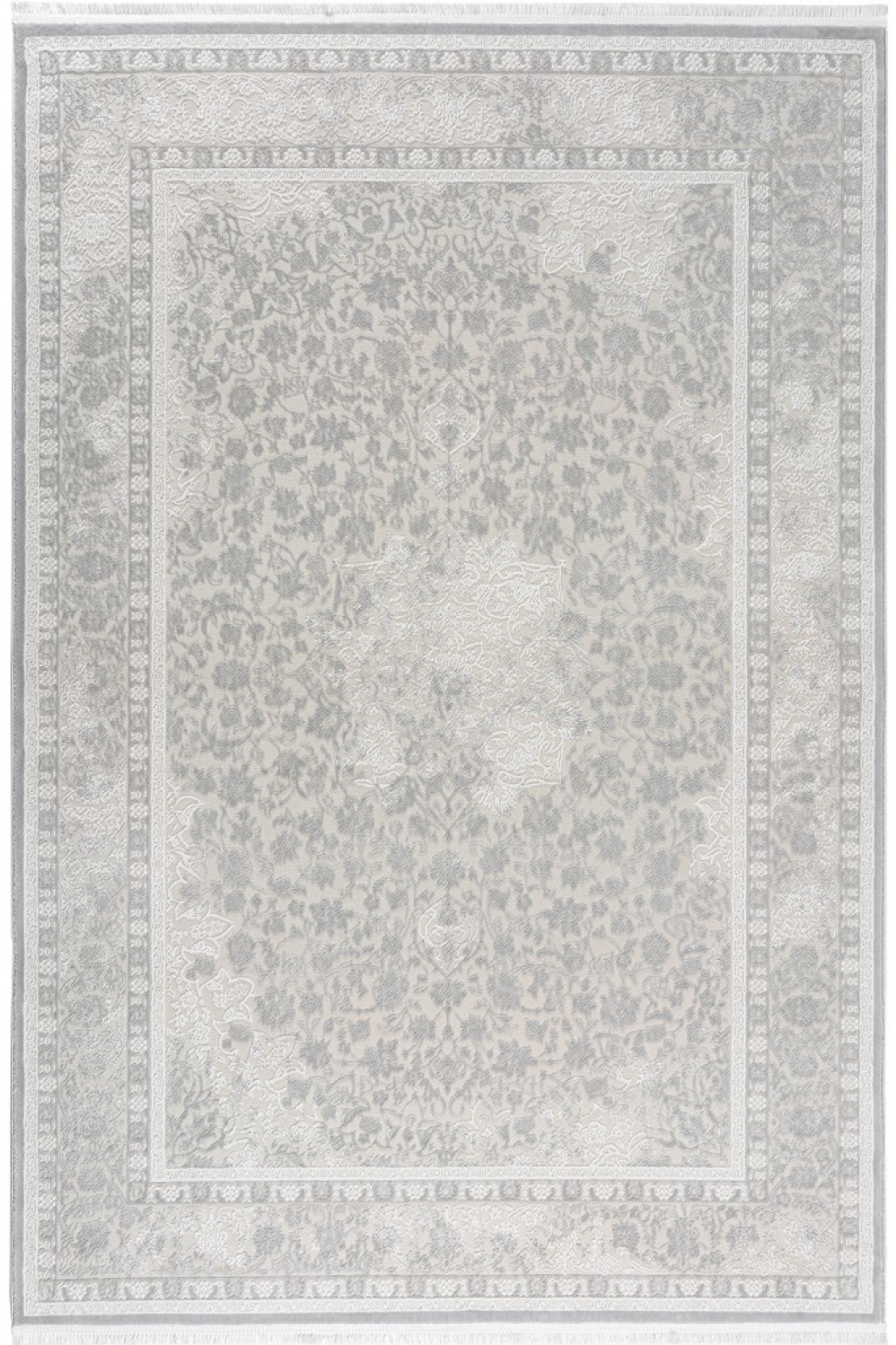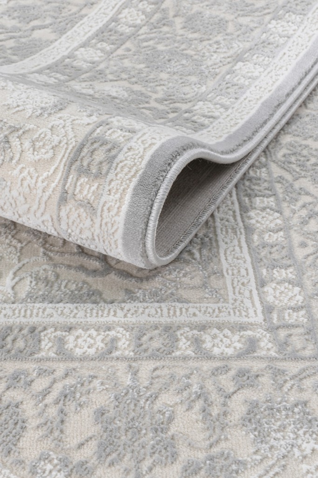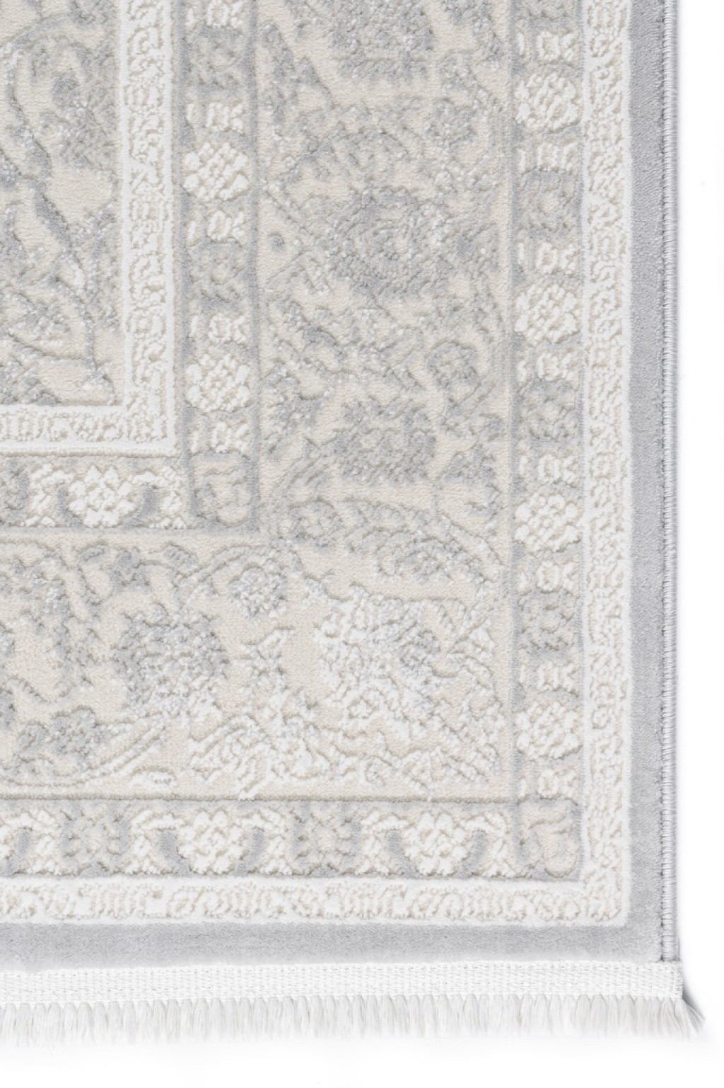 Klasik Medalyon Tasarımlı Pamuk Tabanlı Salon - Oturma Odası Gri Renk Halı