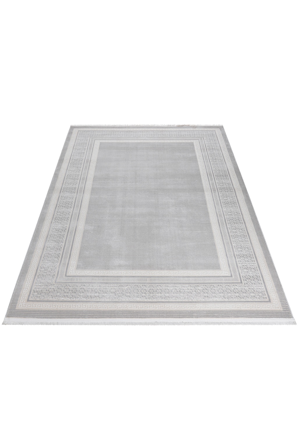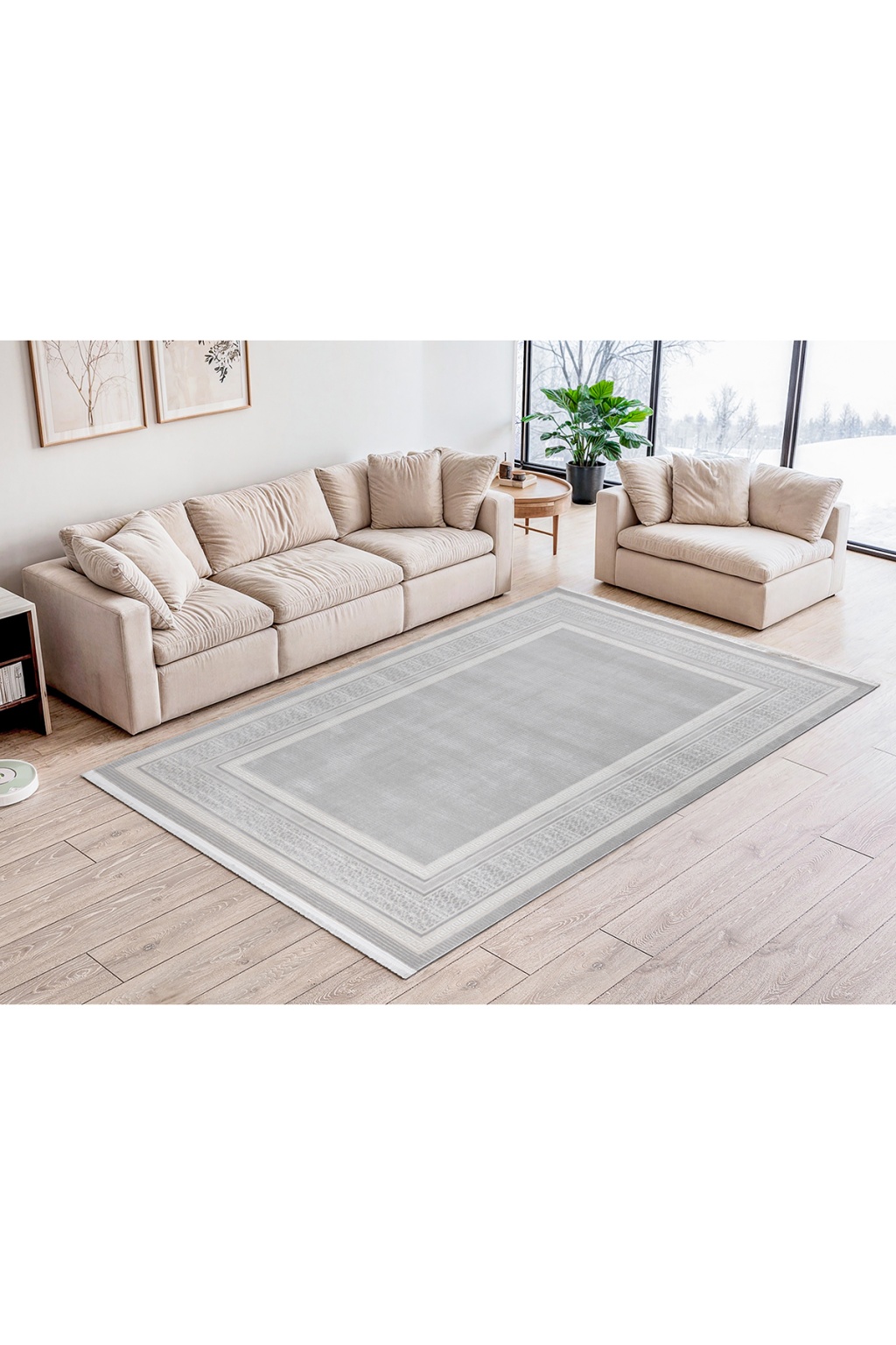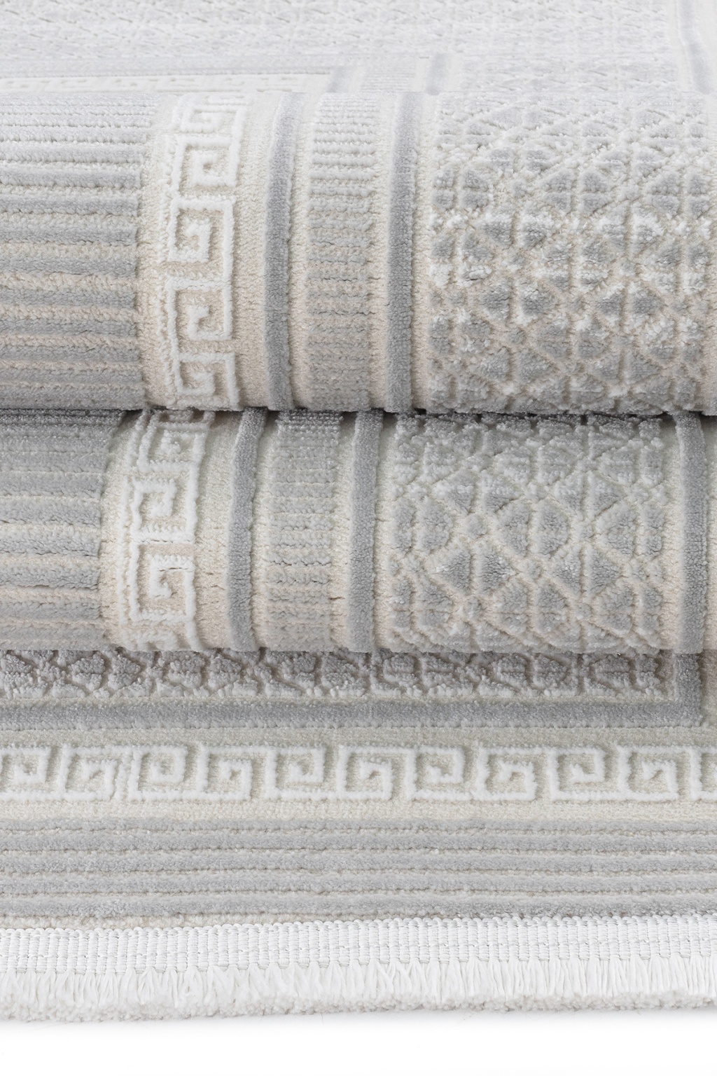 Meander Desenli Pamuk Tabanlı Salon - Oturma Odası Gri Renk Halı