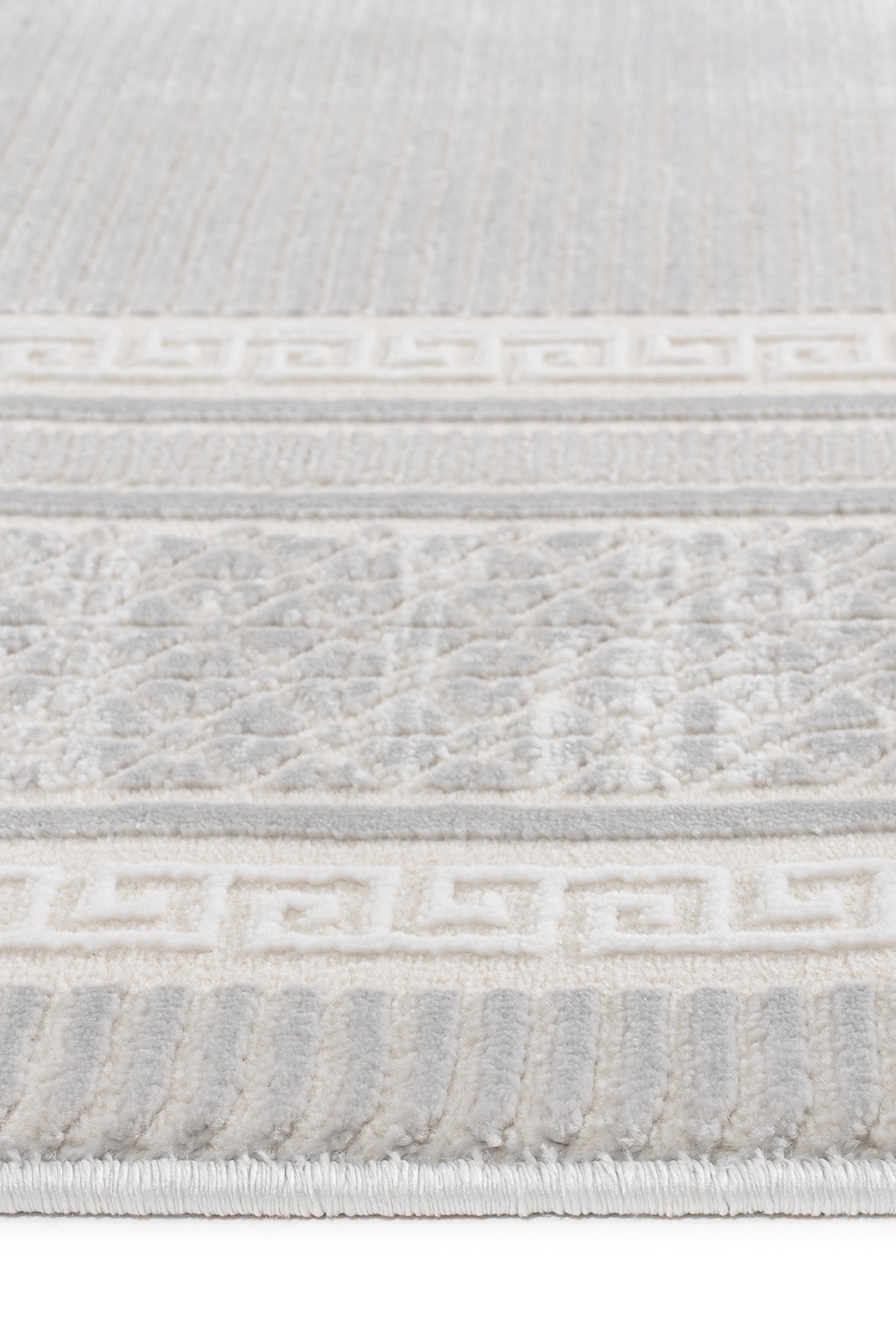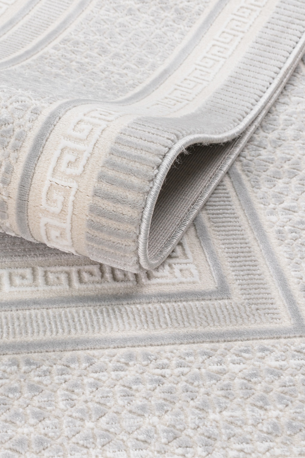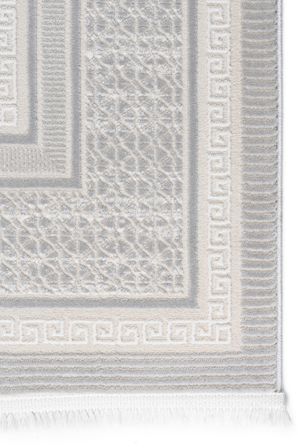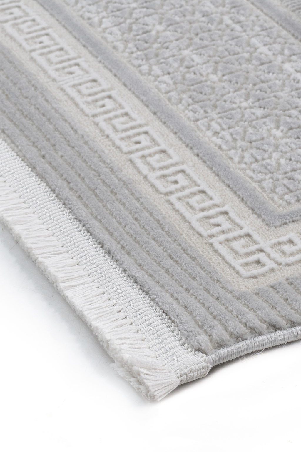 Meander Desenli Pamuk Tabanlı Salon - Oturma Odası Gri Renk Halı