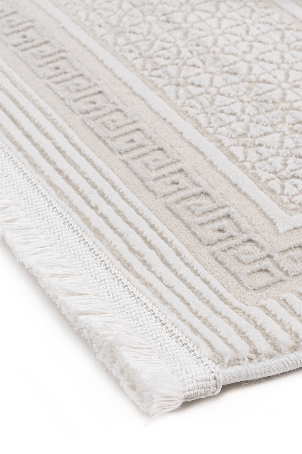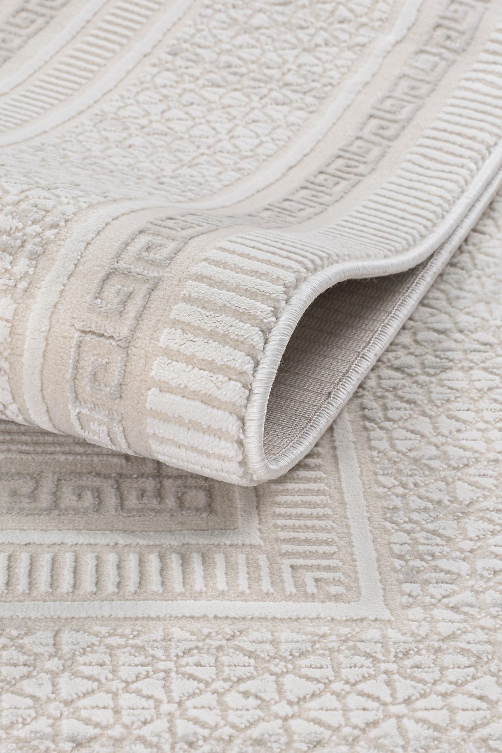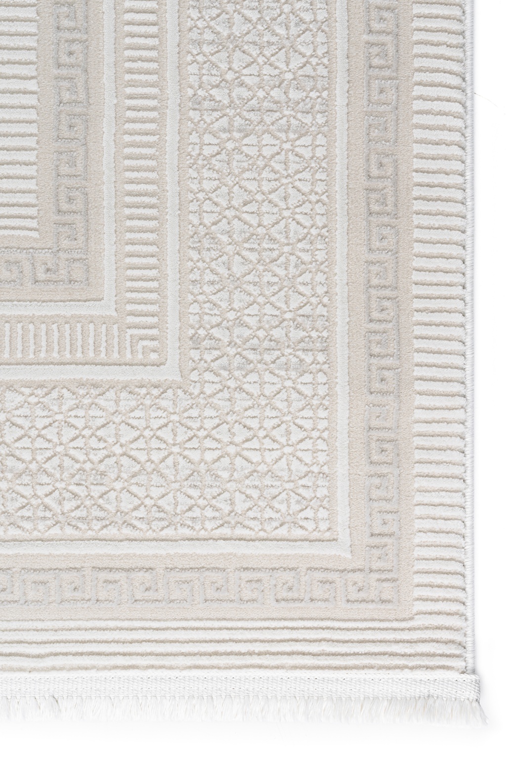 Meander Desenli Pamuk Tabanlı Salon - Oturma Odası Krem Renk Halı