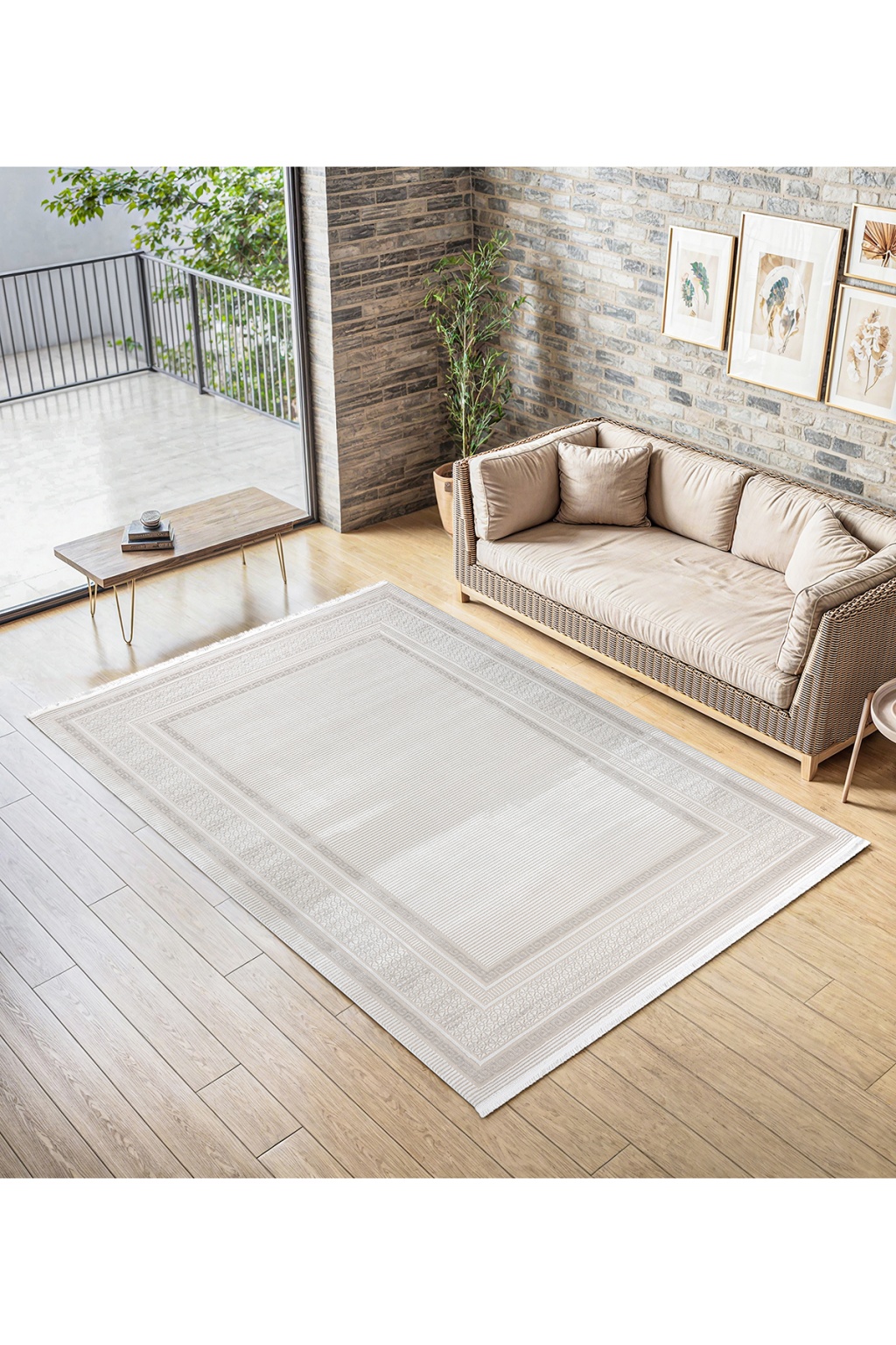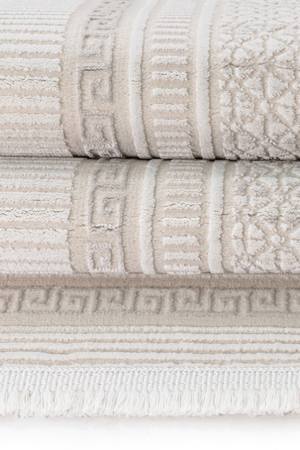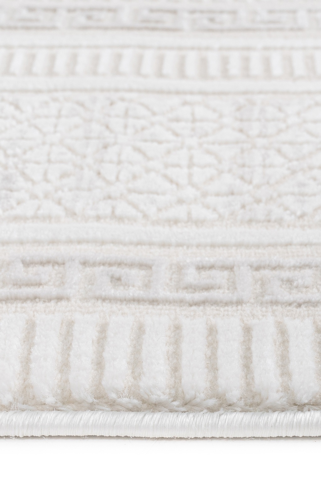 Meander Desenli Pamuk Tabanlı Salon - Oturma Odası Krem Renk Halı