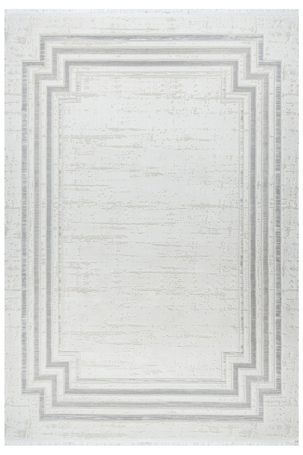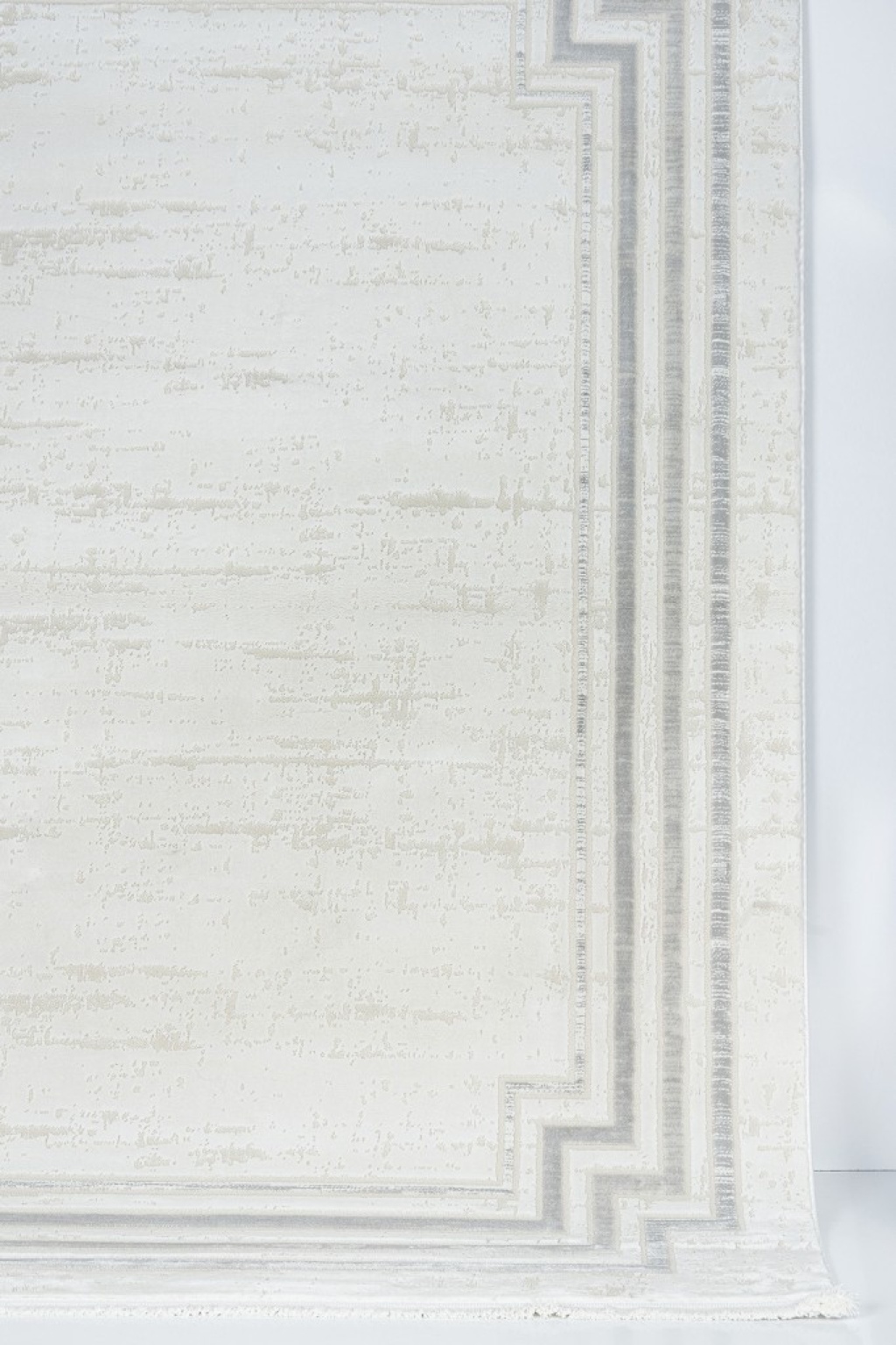 Modern Bordür Desenli Pamuk Tabanlı Salon - Oturma Odası Gri Renk Halı