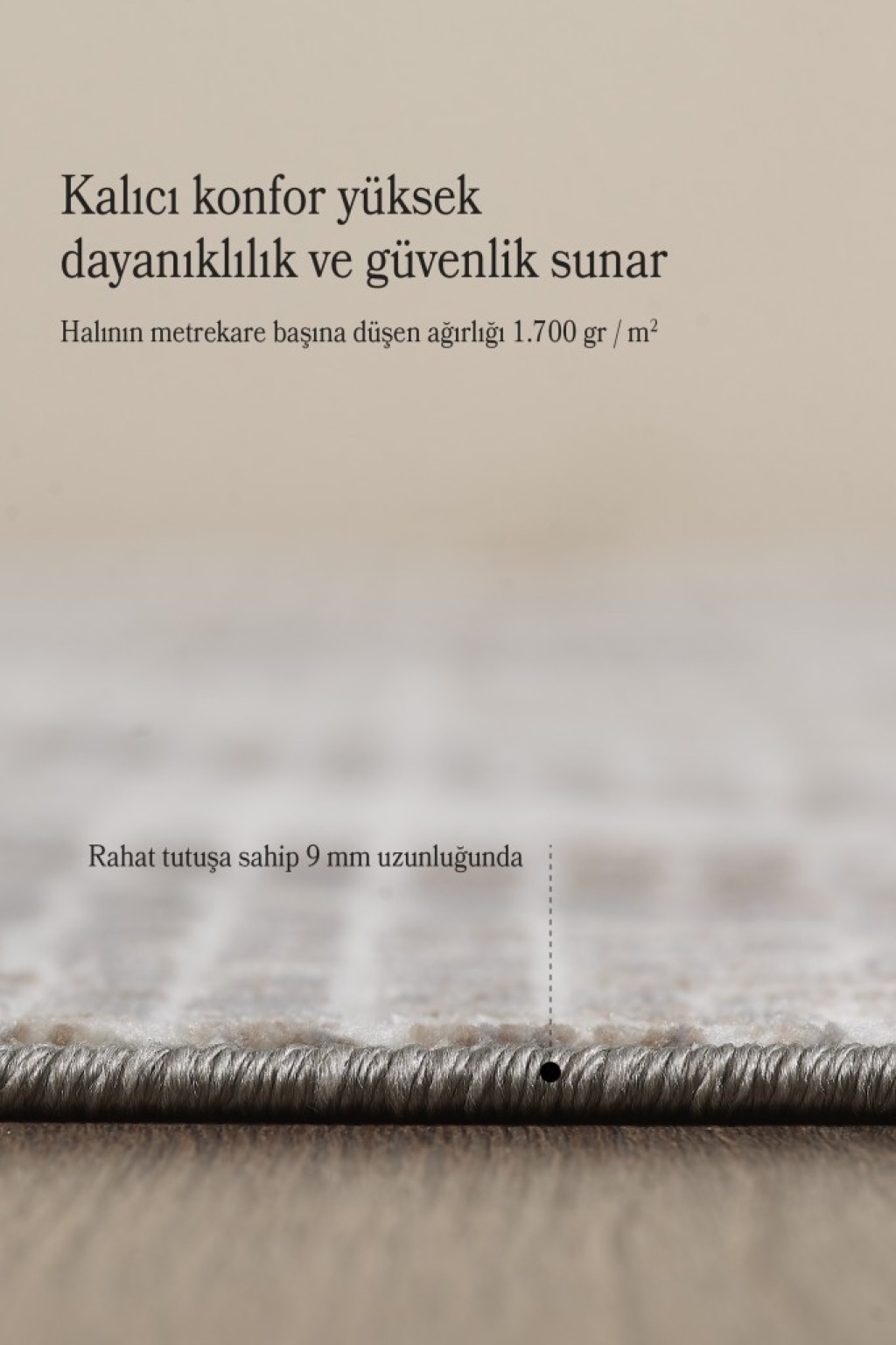 - Polyester Saçaklı Halı – 9 mm Hav Yüksekliği, Pamuk Taban