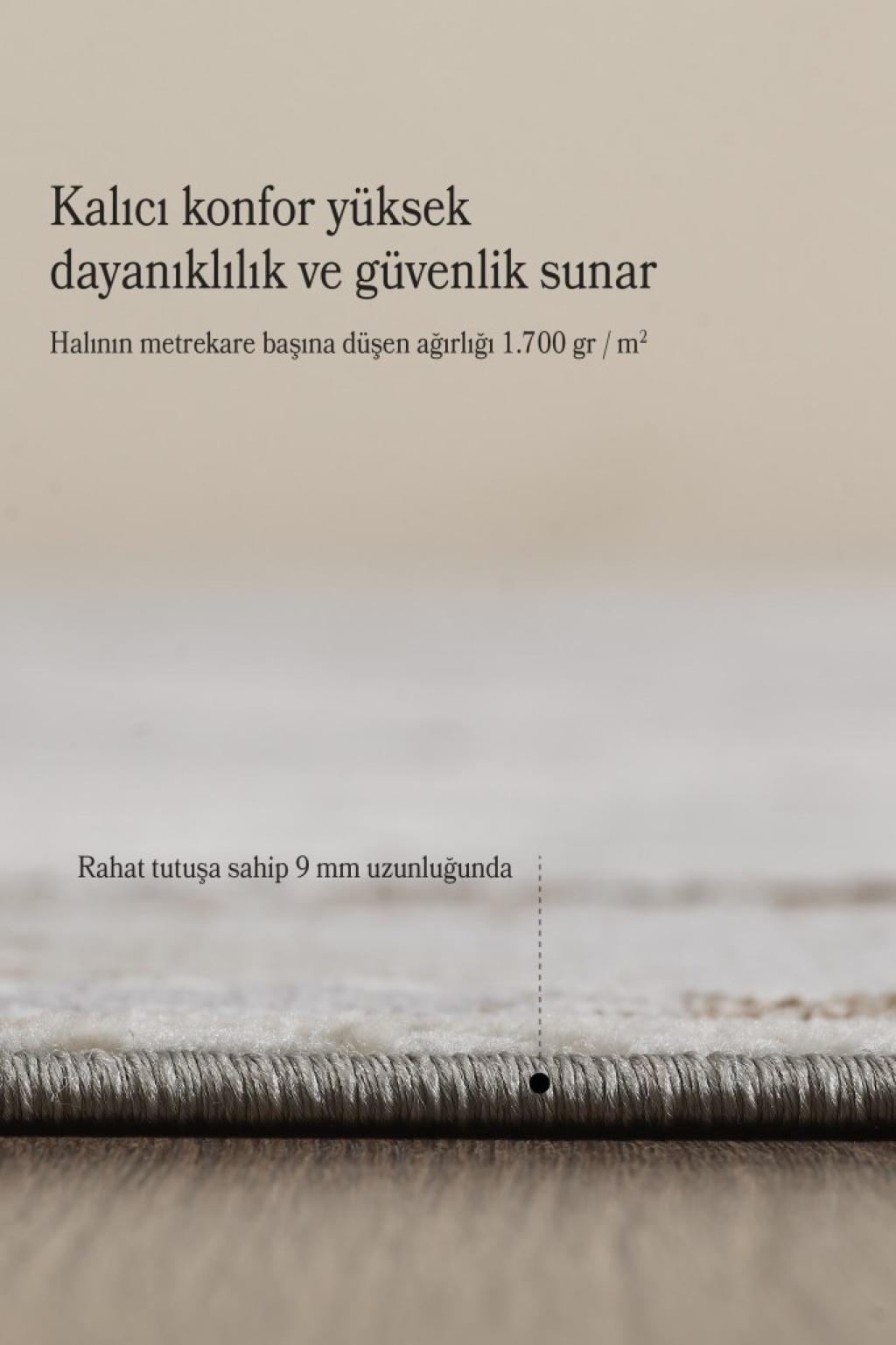 - Polyester Saçaklı Halı – 9 mm Hav Yüksekliği, Pamuk Taban