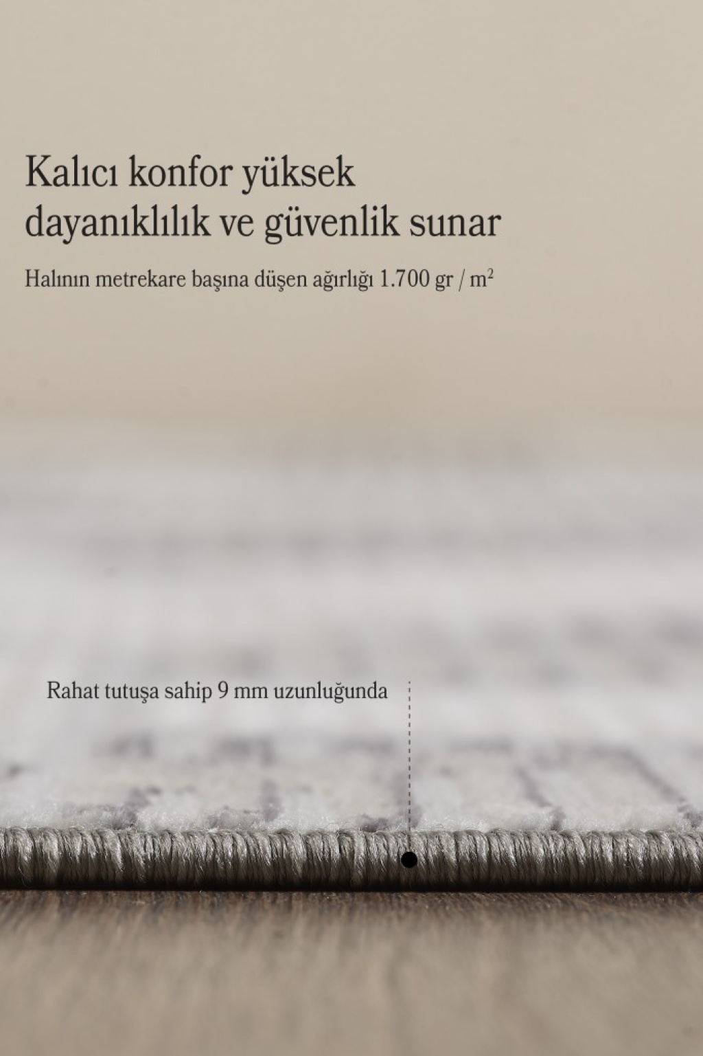 Evinize zarif bir dokunuş katmak için ideal olan bu şık halı, modern tasarımı ve yumuşak dokusuyla dikkat çekiyor. 7 mm hav yüksekliği sayesinde konforlu bir kullanım sunarken, pamuk tabanı ile zeminlere zarar vermez ve kaymayı önlemeye yardımcı olur. Saçak detayları ile klasik ve modern tarzı bir arada sunan bu halı, salon, oturma odası veya yatak odası gibi yaşam alanlarınız için mükemmel bir tercih. Ürün Özellikleri: