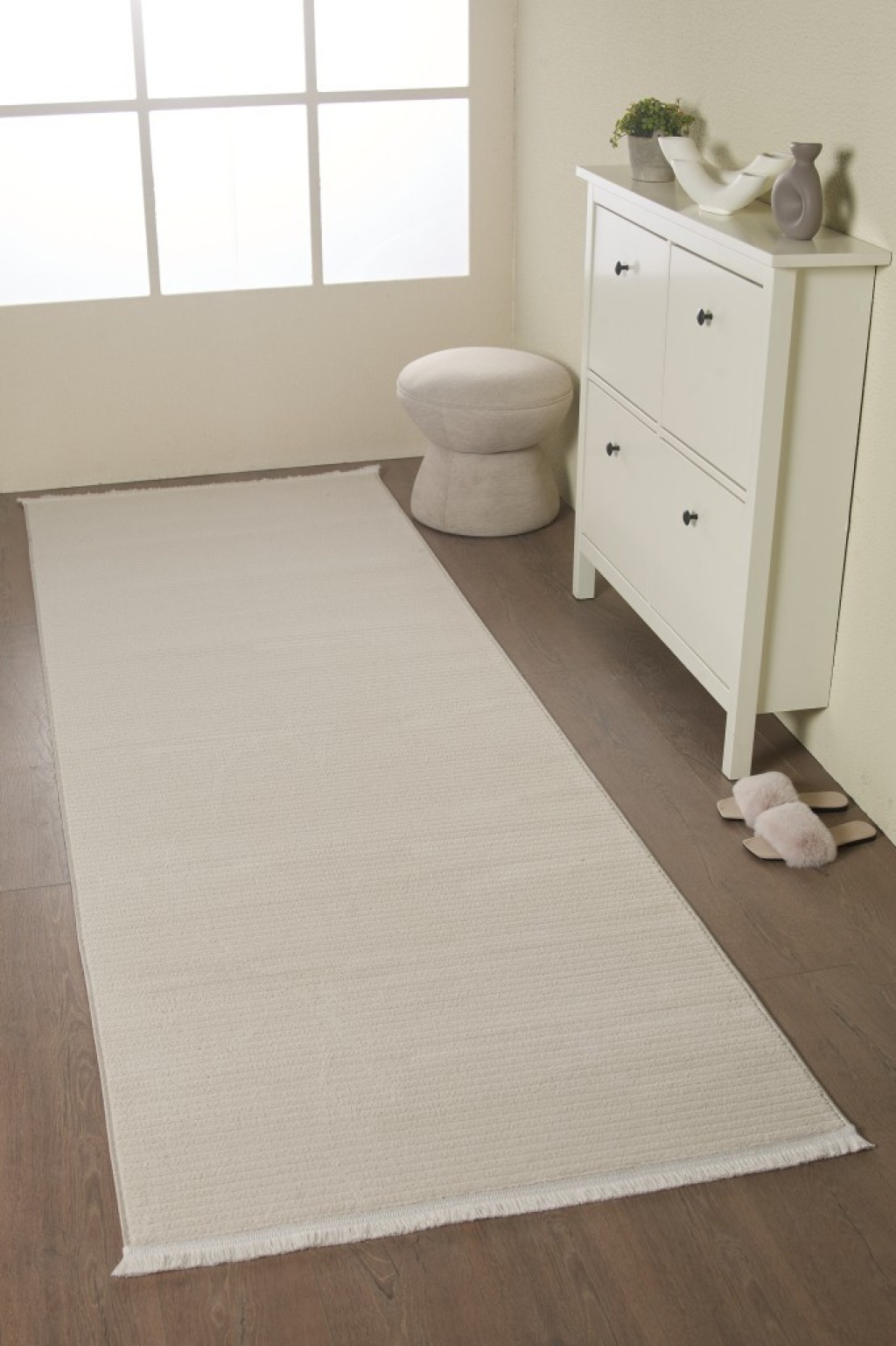 Modern Tasarımlı Salon Mutfak Koridor halısı Düz Saçaklı Bej Renkli
