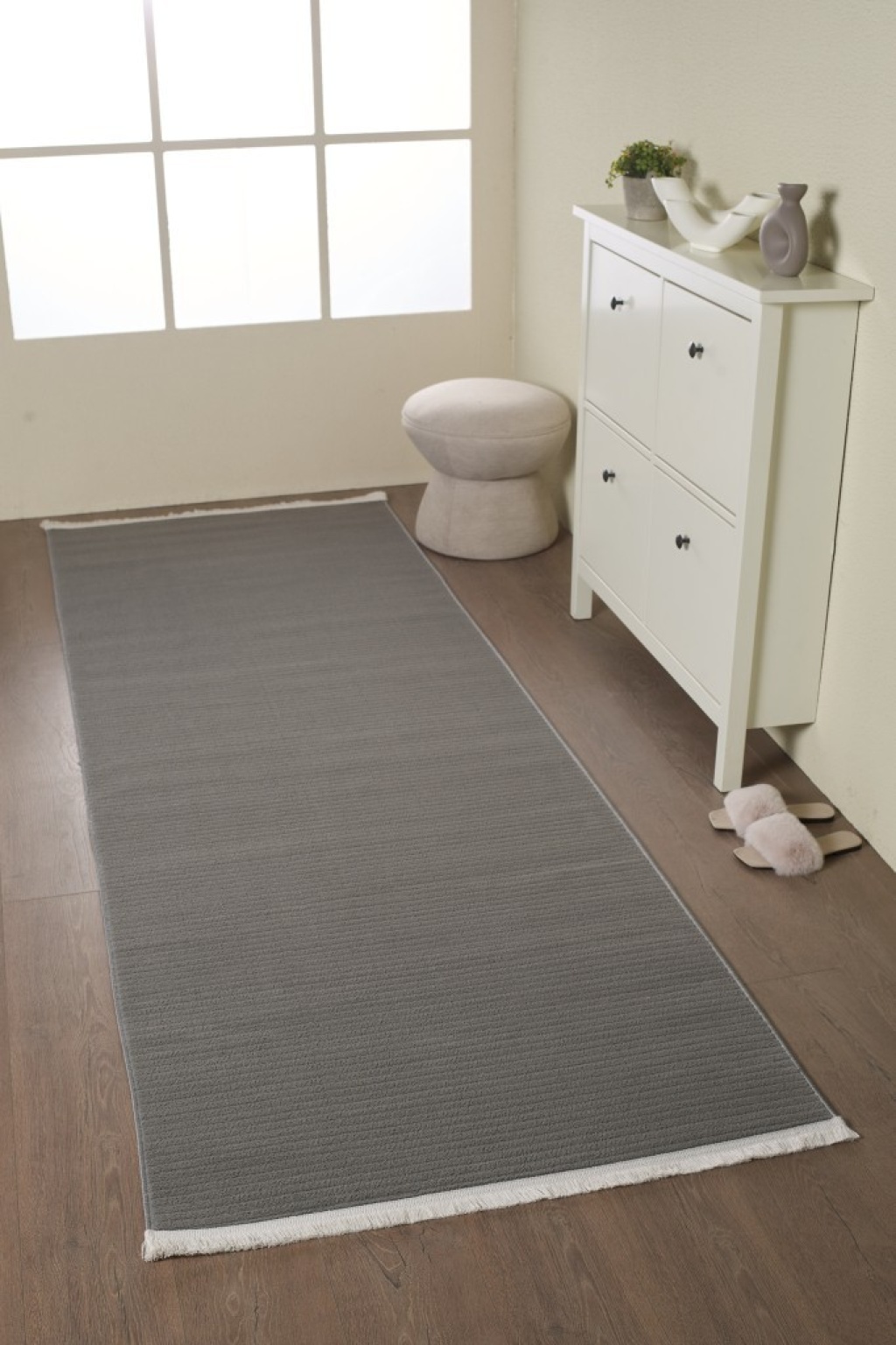Modern Tasarımlı Salon Mutfak Koridor halısı Düz Saçaklı Gri Renkli