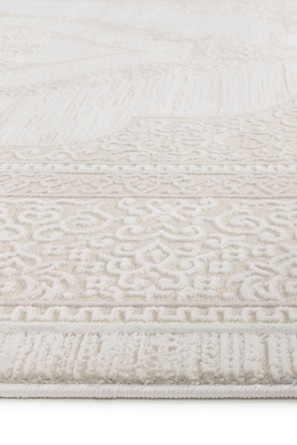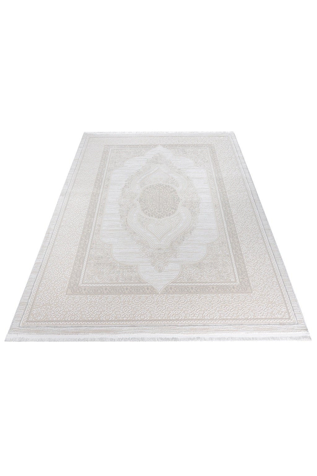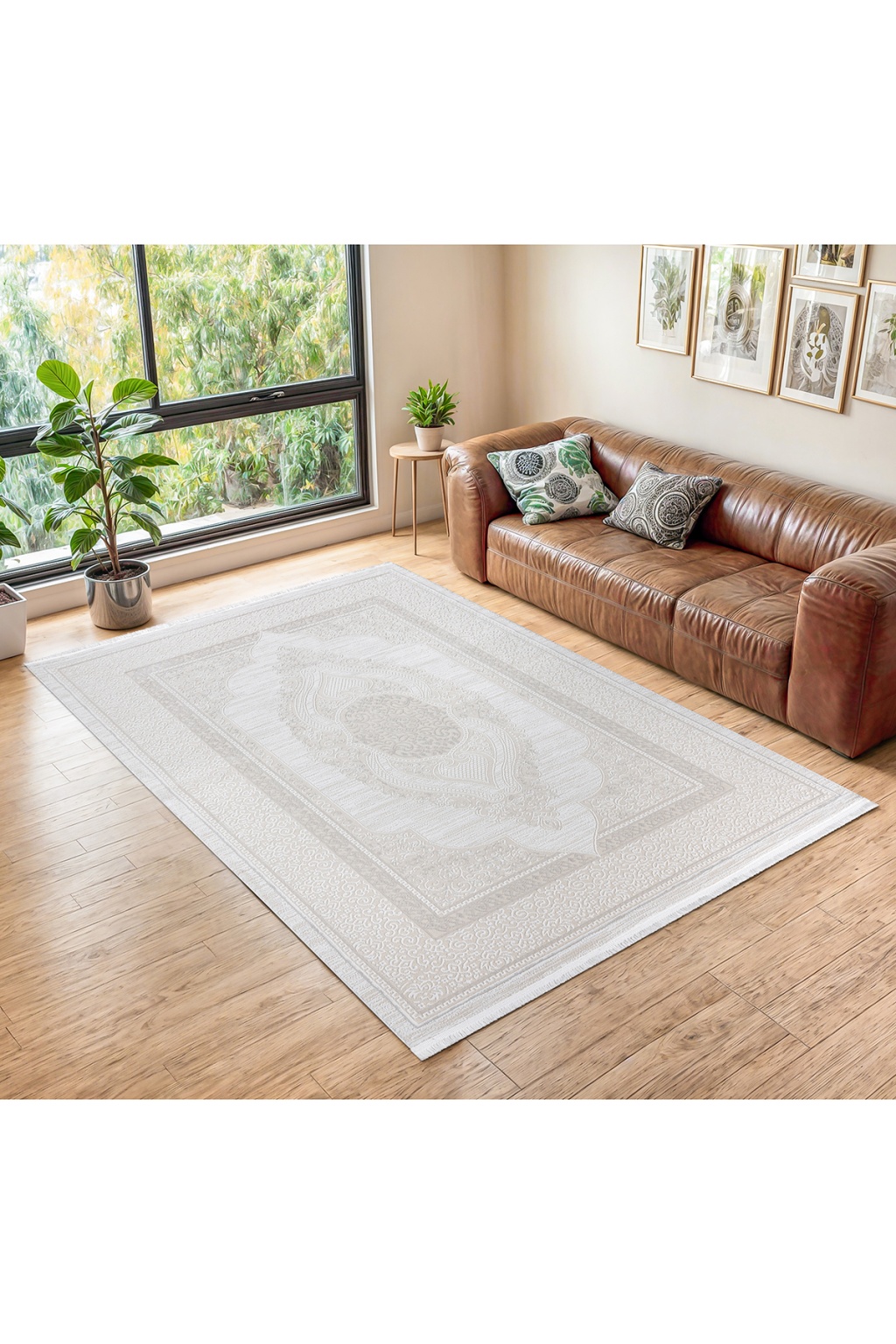 Osmanlı Medalyonlu Halı Desenli Pamuk Tabanlı Salon - Oturma Odası Krem Renk Halı