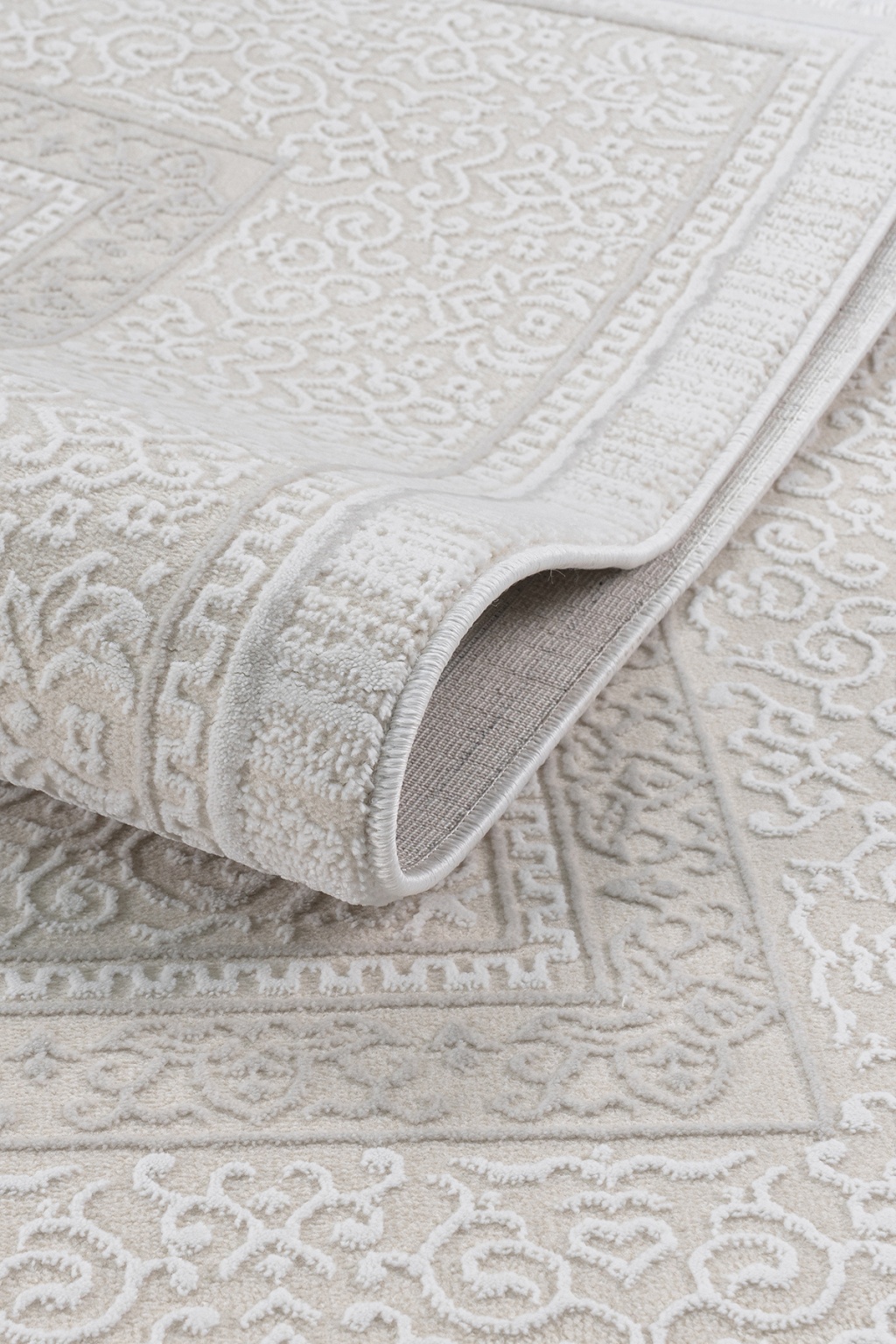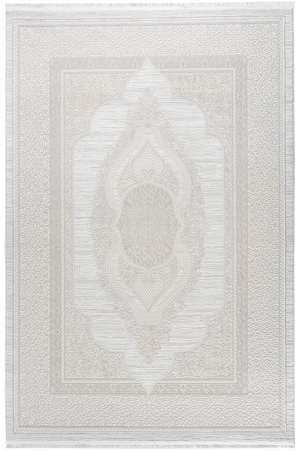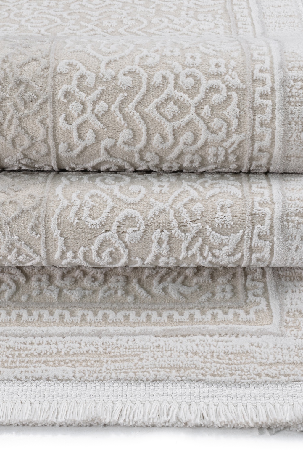 Osmanlı Medalyonlu Halı Desenli Pamuk Tabanlı Salon - Oturma Odası Krem Renk Halı