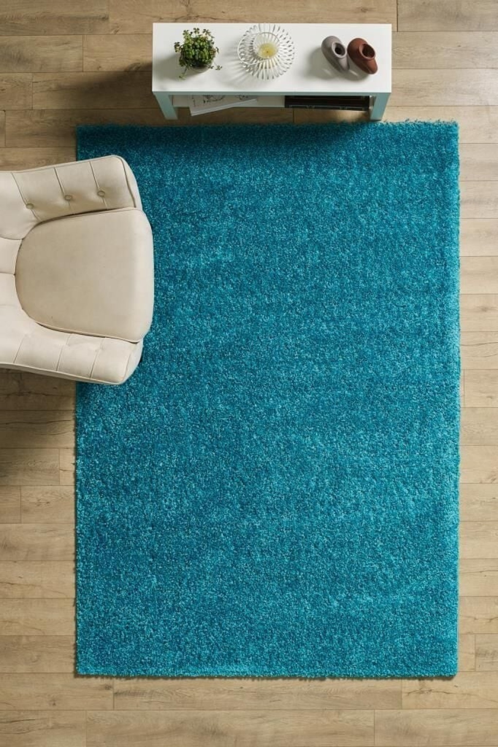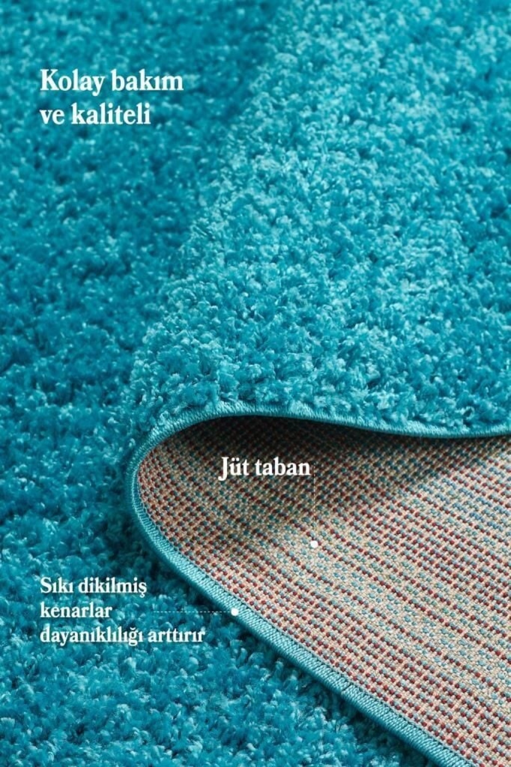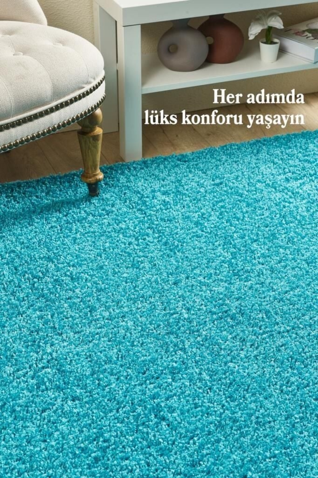 Yüksek Tüylü 30 mm Hav Yüksekliğinde Düz Mavi renkli Shaggy Halı