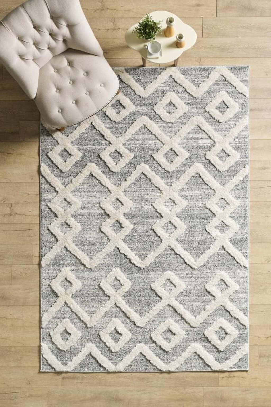Yumuşak Bukle Tabanlı Modern kabartmalı 3D INKA Motif Desenli Gri Renkli Halı