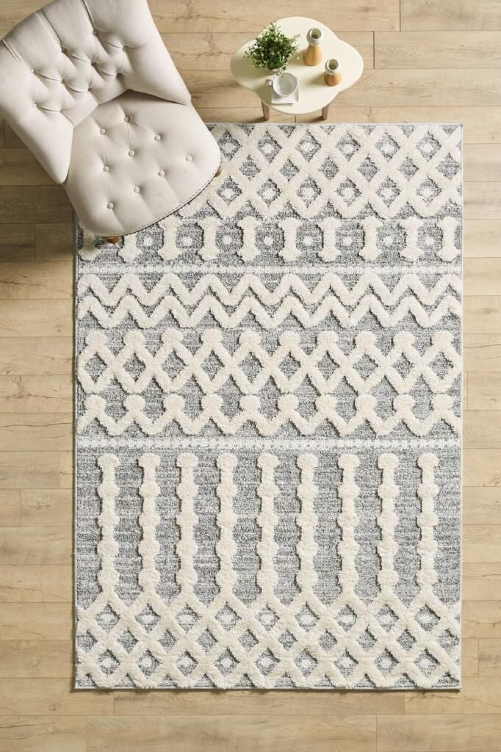 Yumuşak Bukle Tabanlı Modern kabartmalı 3D INKA örgü desenli Krem Gri Renkli Halı