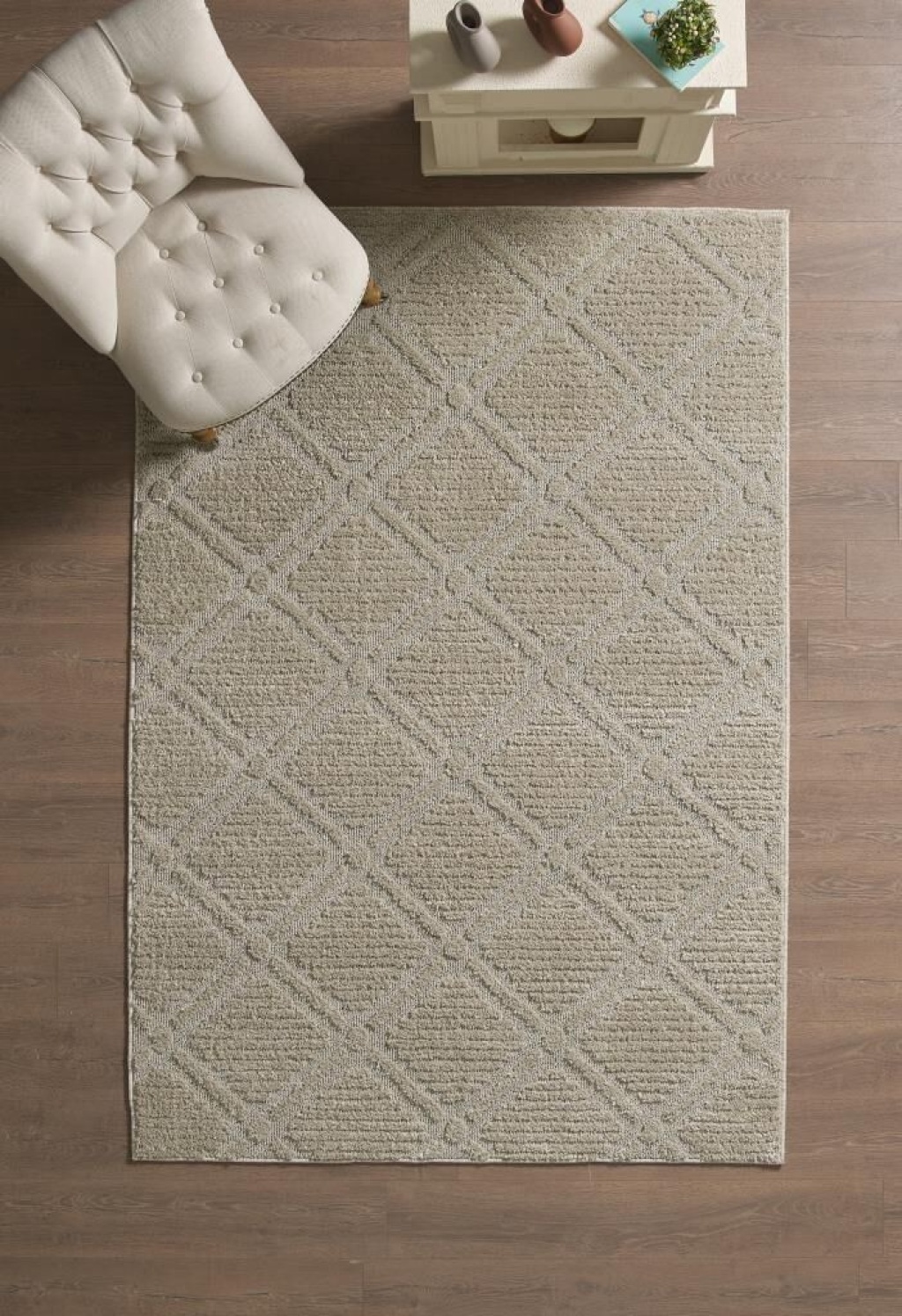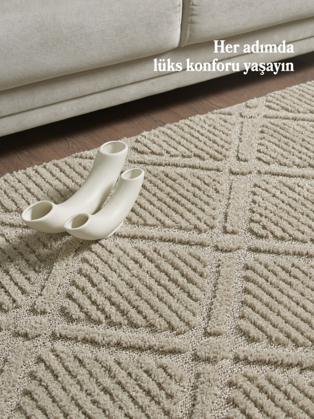 Yumuşak Peluş Tüylü İskandinav desenli Kabarık Bukleli Bej Renkli Halı