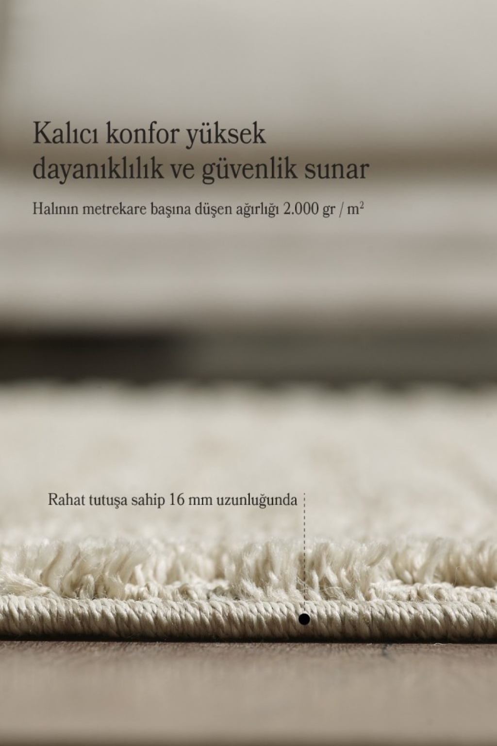 •  İplik Cinsi: Polipropilen – Toz tutmayan, kolay temizlenen, antialerjik yapıya sahip.
