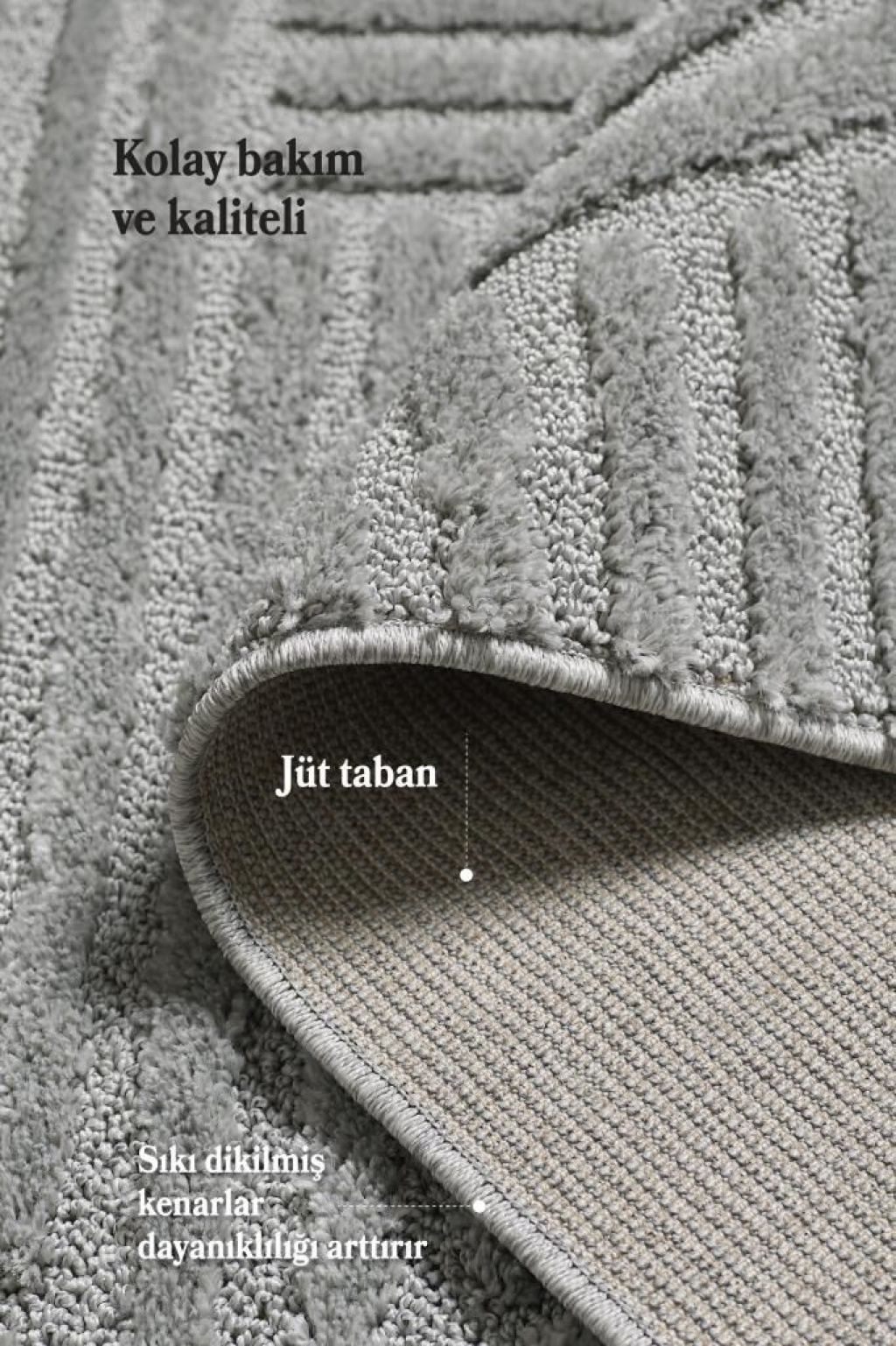 ✅ Taban: Jüt taban – Doğal malzeme, zemine iyi tutunur, kaymaz ve koku yapmaz.