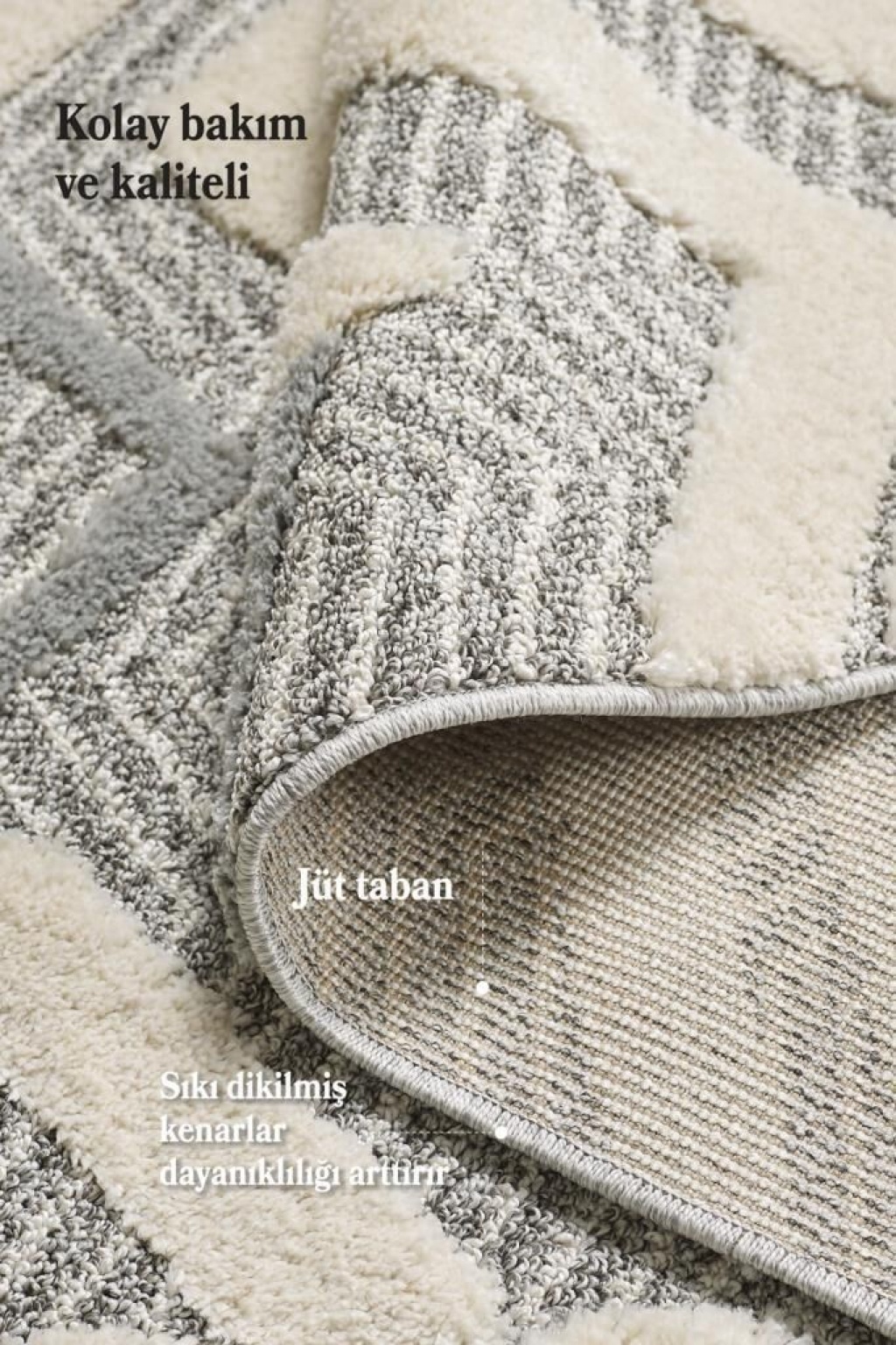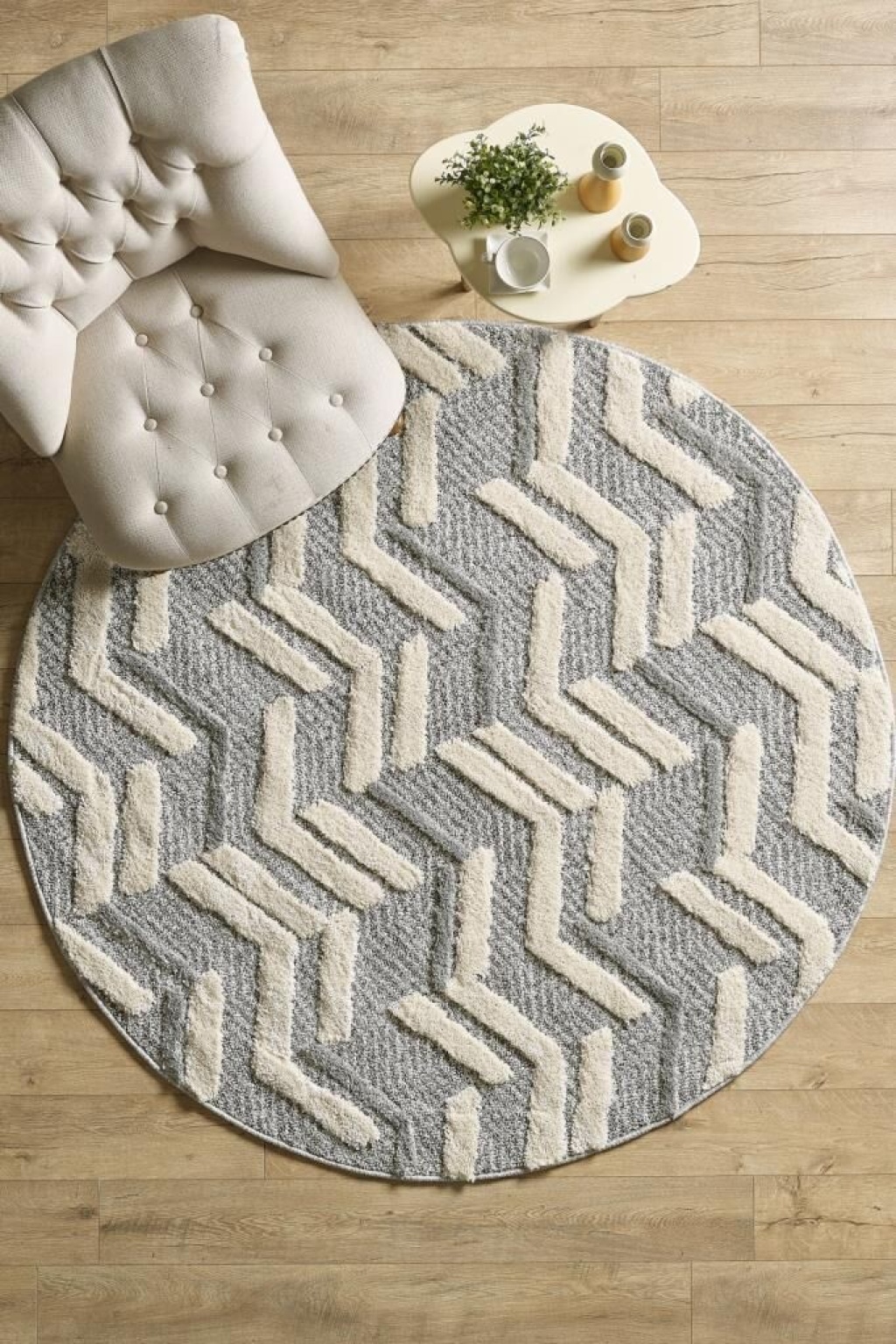 Yuvarlak Halı Yumuşak Bukle Tabanlı Modern Kabartmalı 3D Abstrak Dalga Desenli Krem Gri Renkli Halı