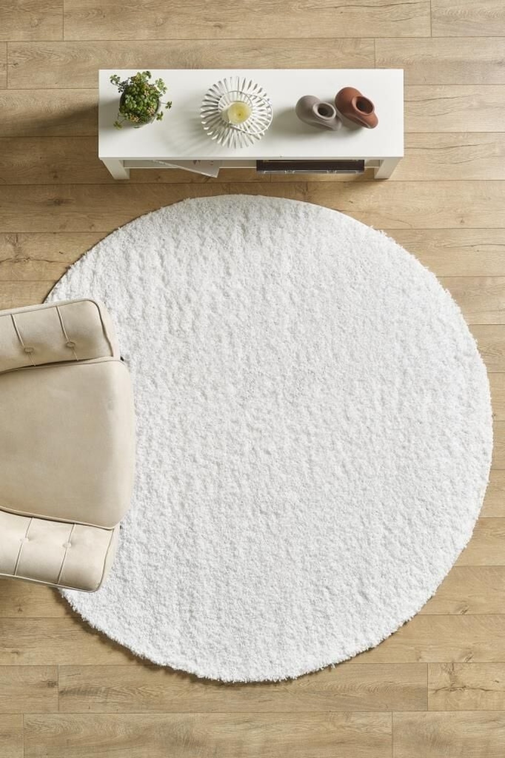 Yuvarlak Halı Yumuşak Yüksek Havlı 30 mm Shaggy Salon halısı Düz Beyaz Renkli
