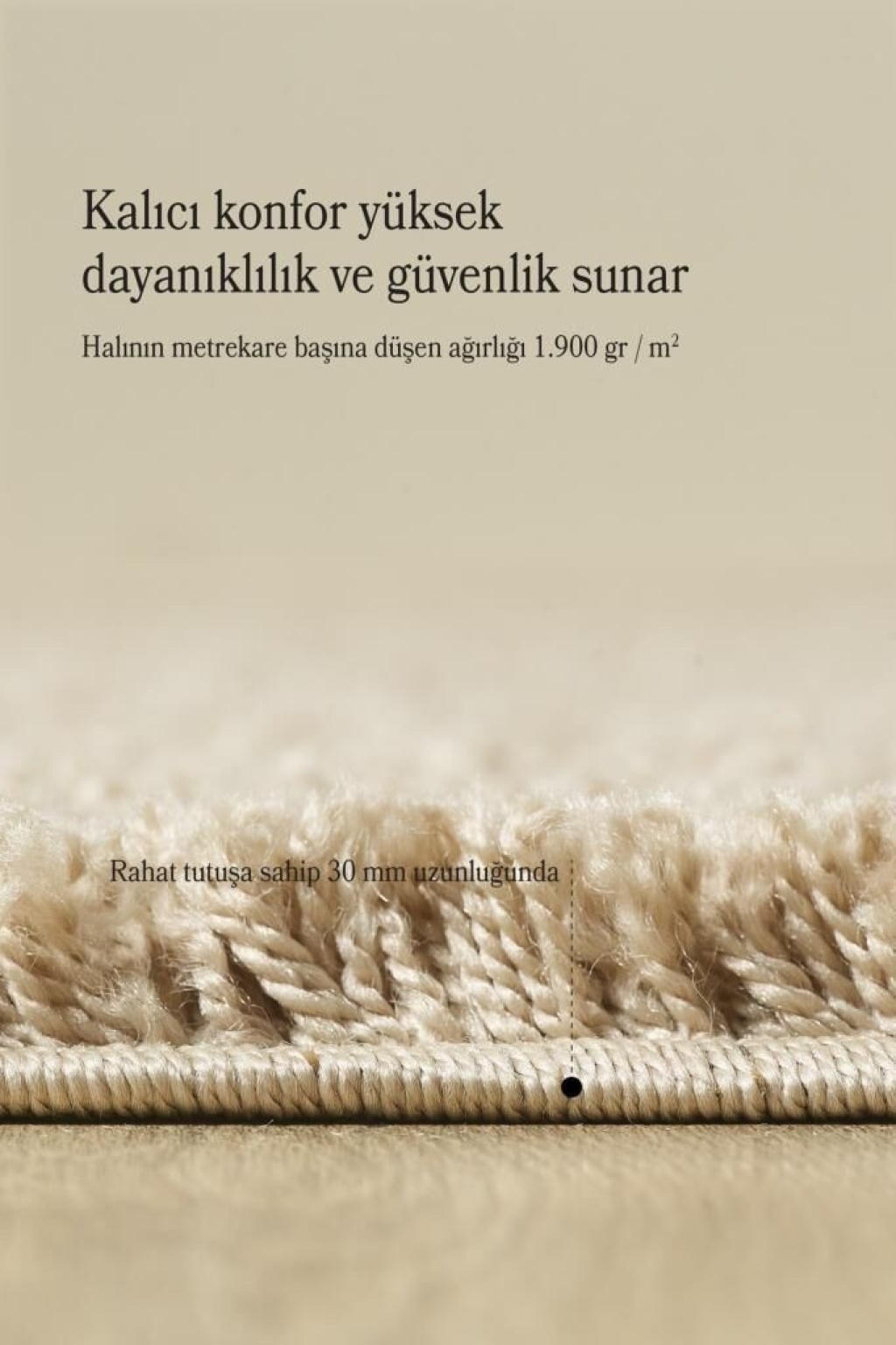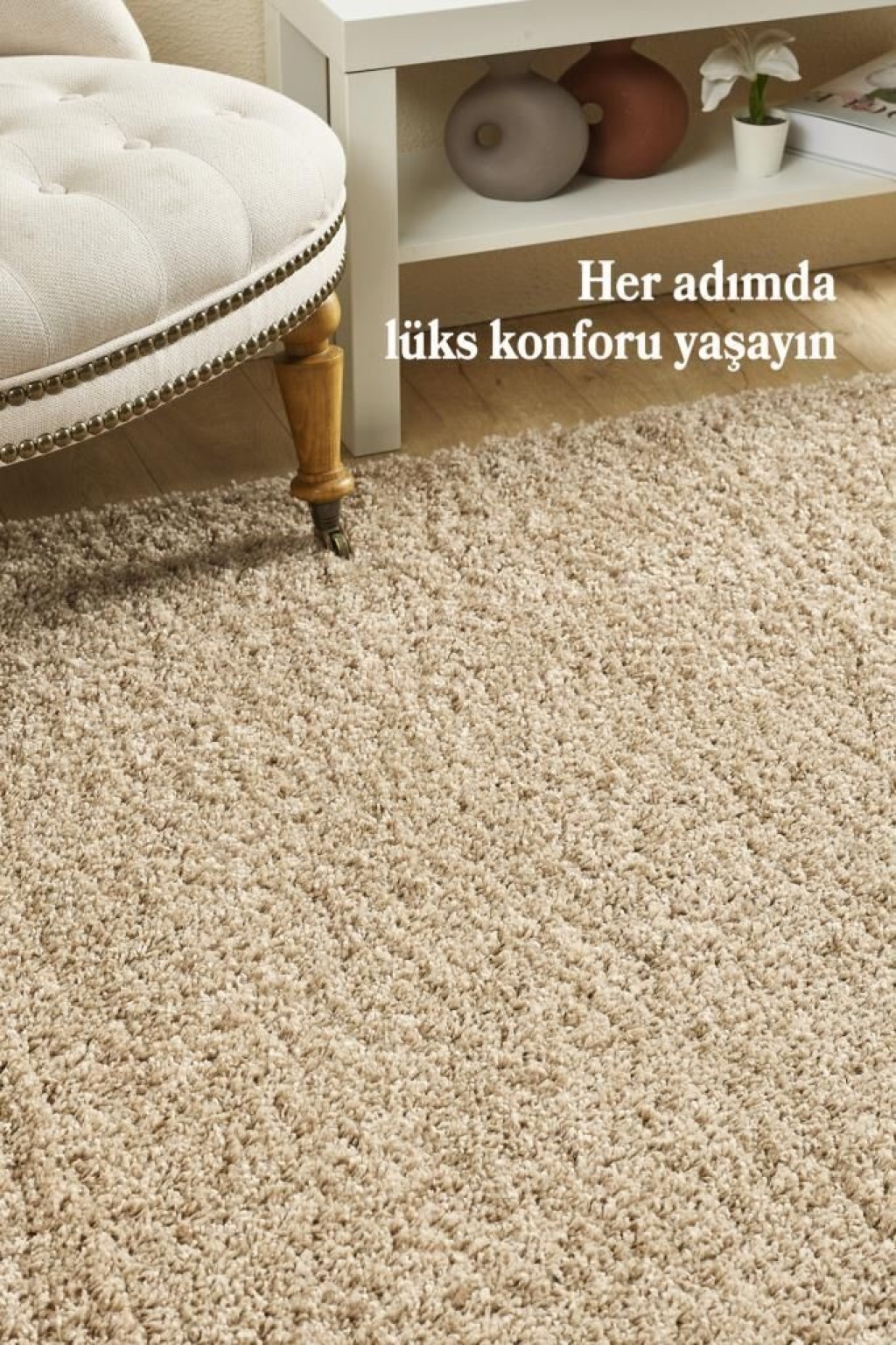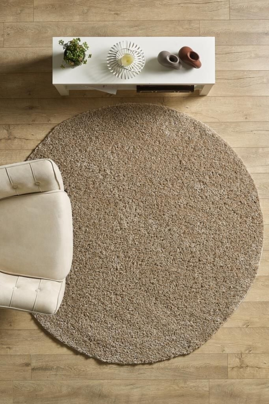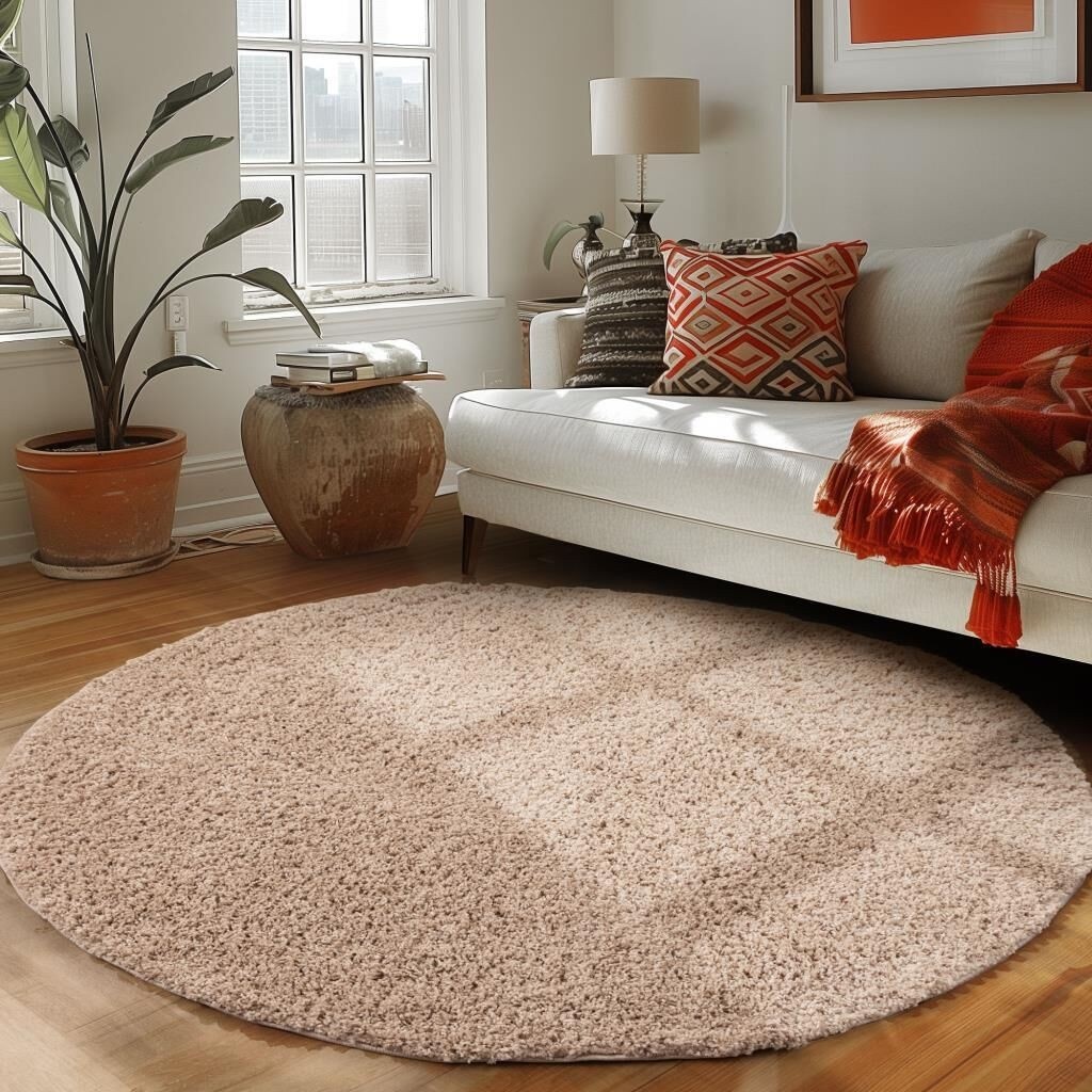 Yuvarlak Shaggy Halı 30 mm uzun ve yüksek tüylü Düz Bej renkli