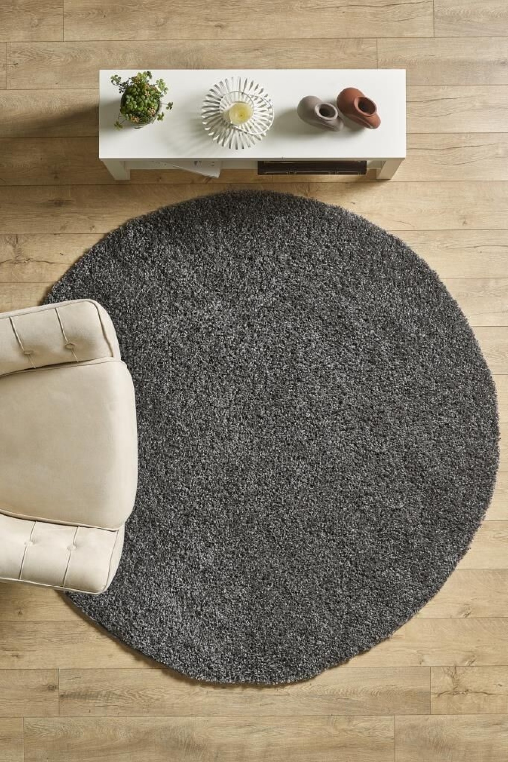 Yuvarlak Shaggy Halı 30 mm uzun ve yüksek tüylü düz Koyu Gri rengi